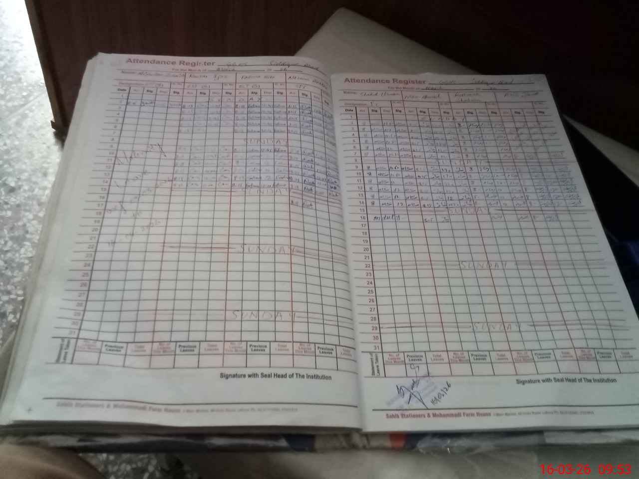 | CNIC | Full Name | Designation | R/C | Absence During Last Calender Month |