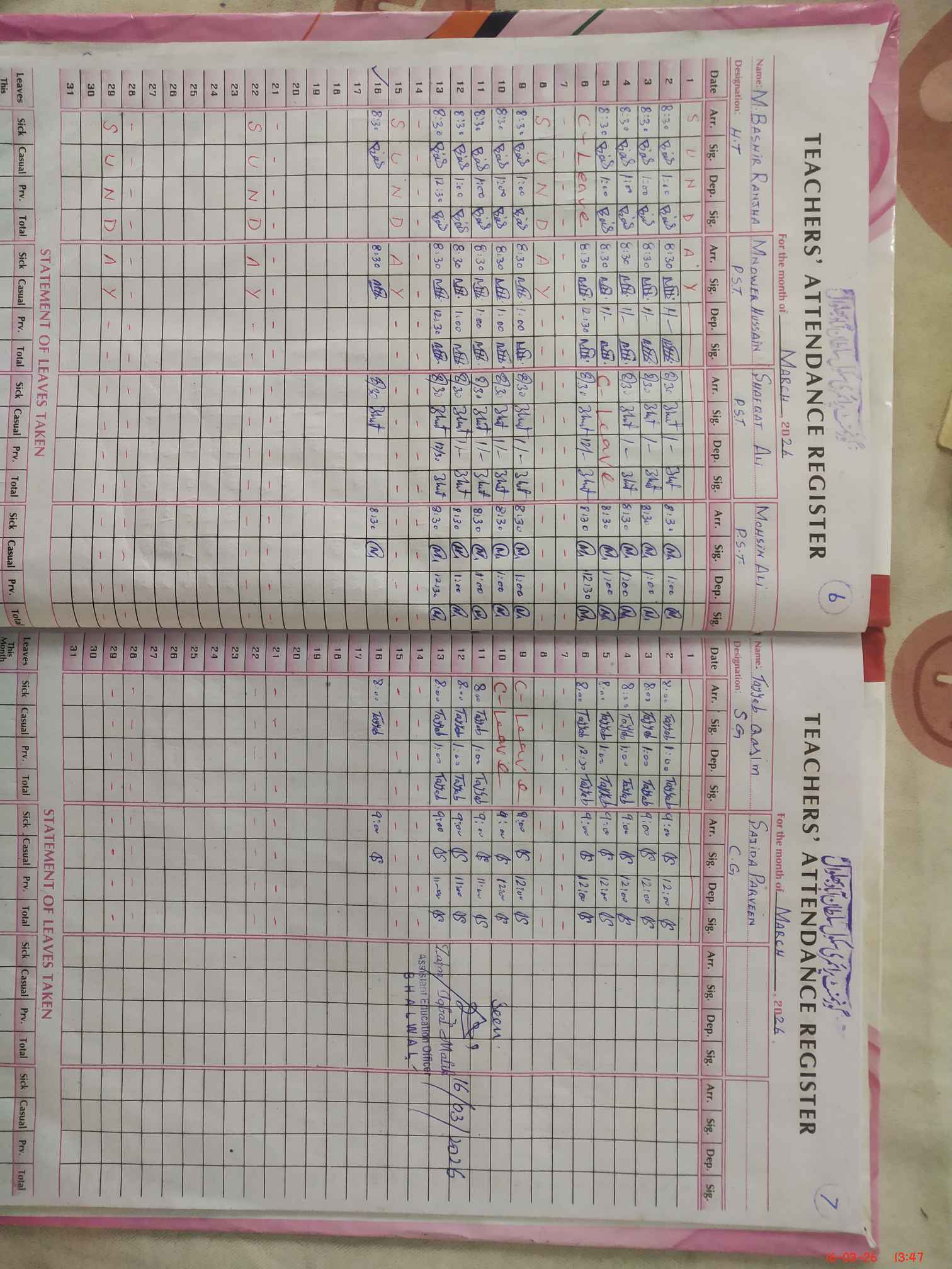 | Name: MU**** BA**** Designation: (School Headmaster's/Headmistress's) PST Phone/Cell Number: 03**** |