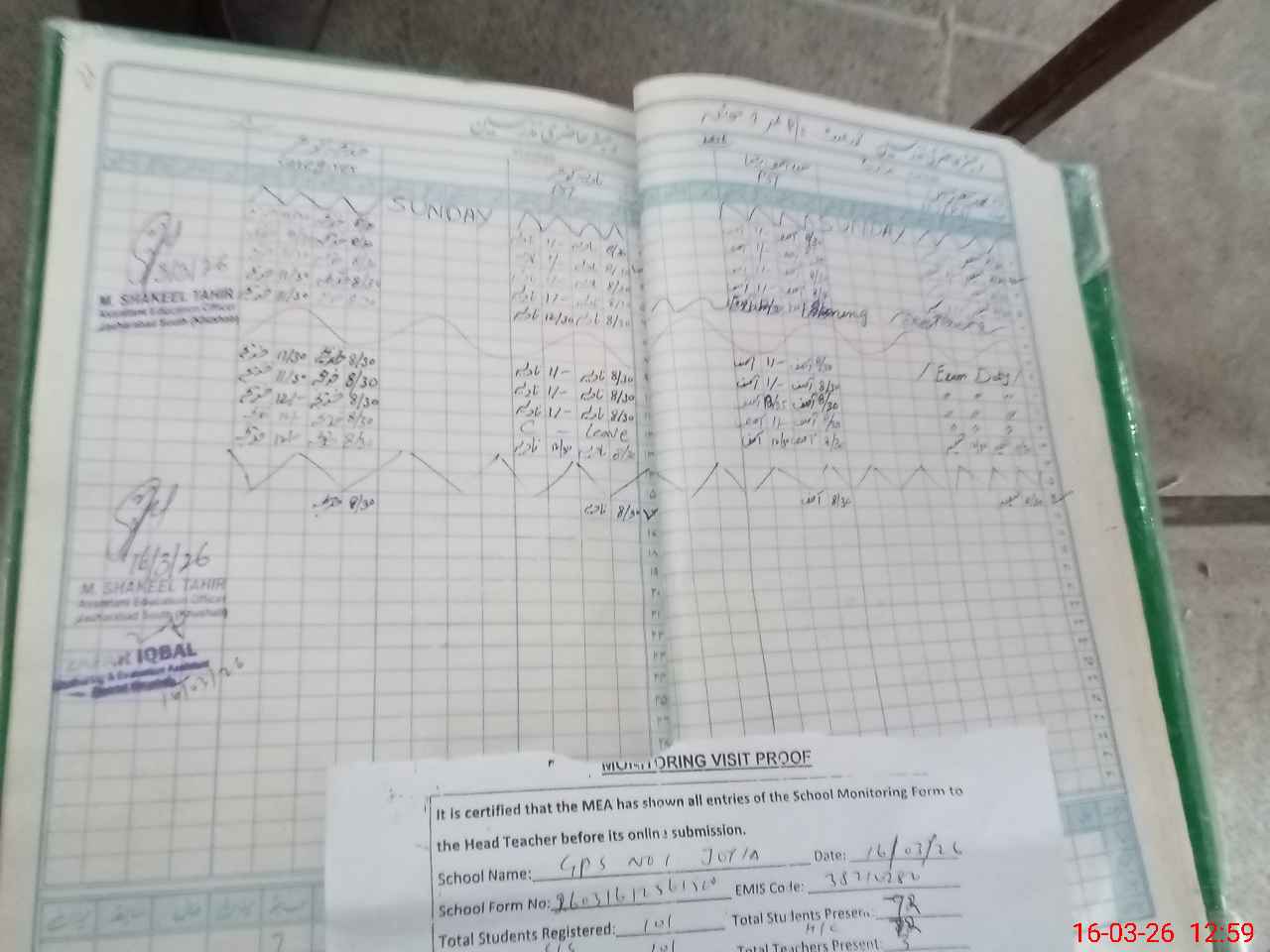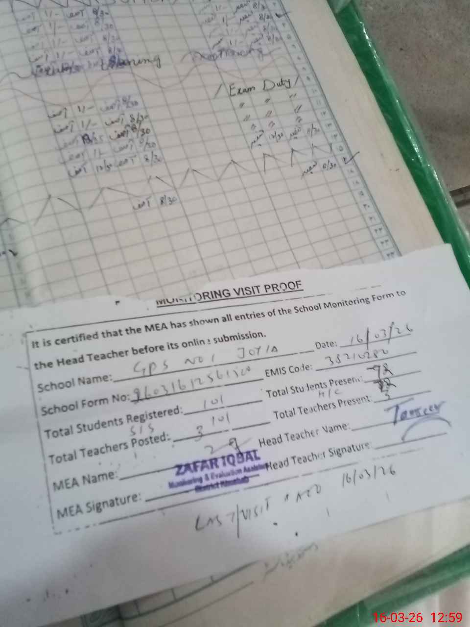 | Remarks (Use Separate Page if Required): last visit AEO 16 Mar 26 Total on register 101 Total on sis 101 | |||||