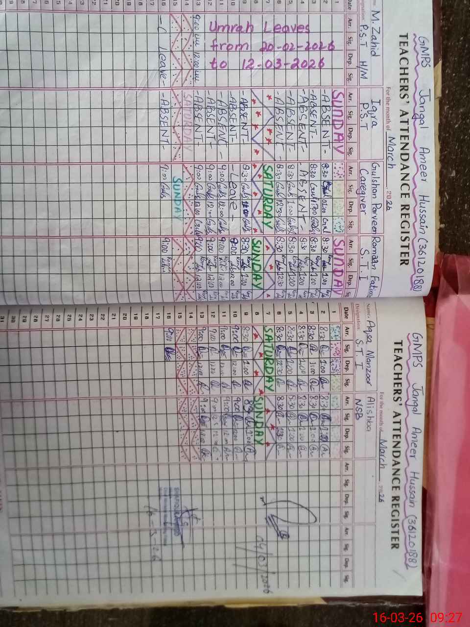 | 36**** | Mu**** Za**** | PST Science/Maths | Regular | 0 | 0 | 0 | 0 | 0 | 0 | 0 | 0 | 0 | Absent (Un-Authorized) |