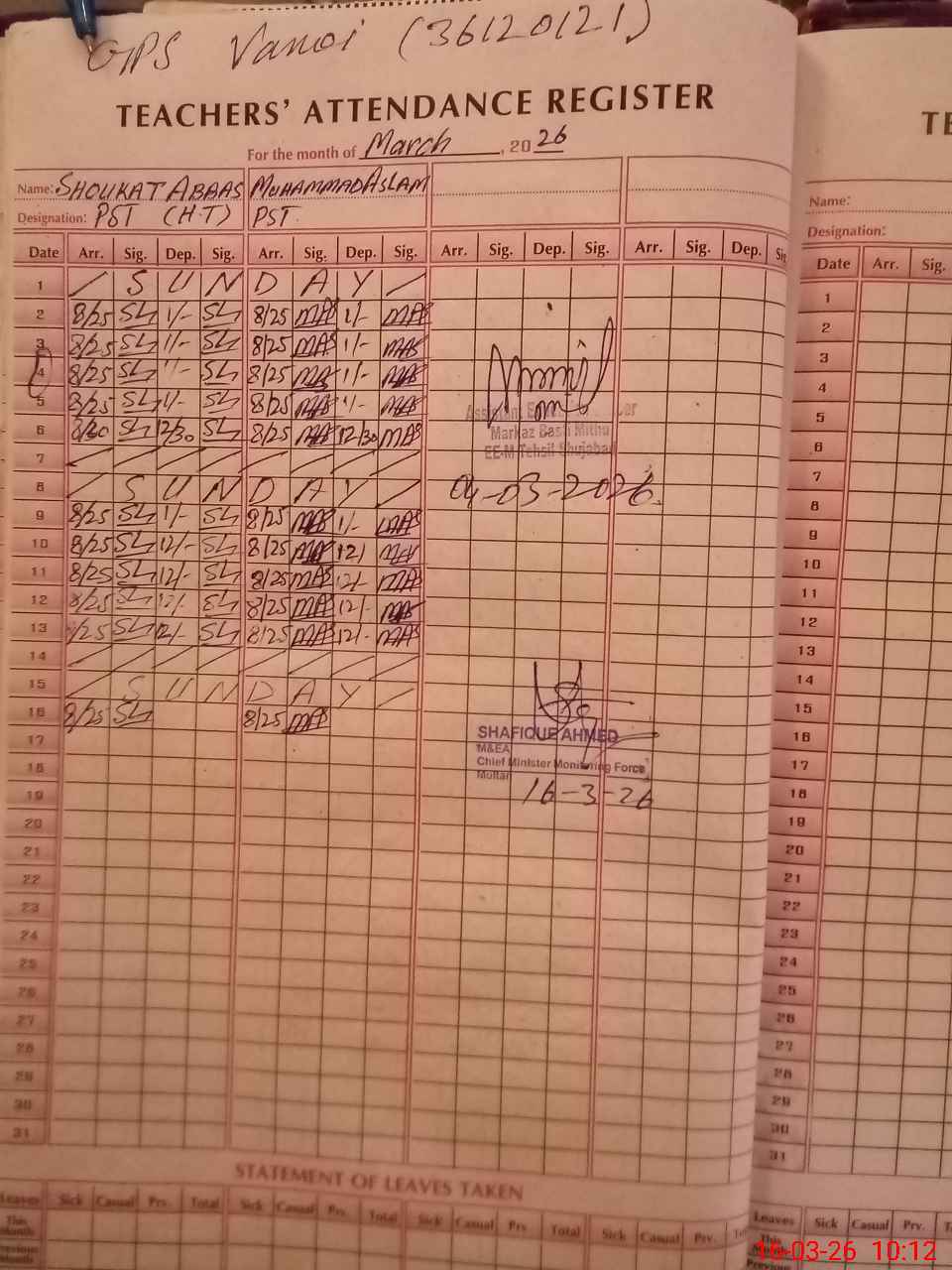 | Name: Sh**** Ab**** Designation: (School Headmaster's/Headmistress's) PST Phone/Cell Number: 03**** |
