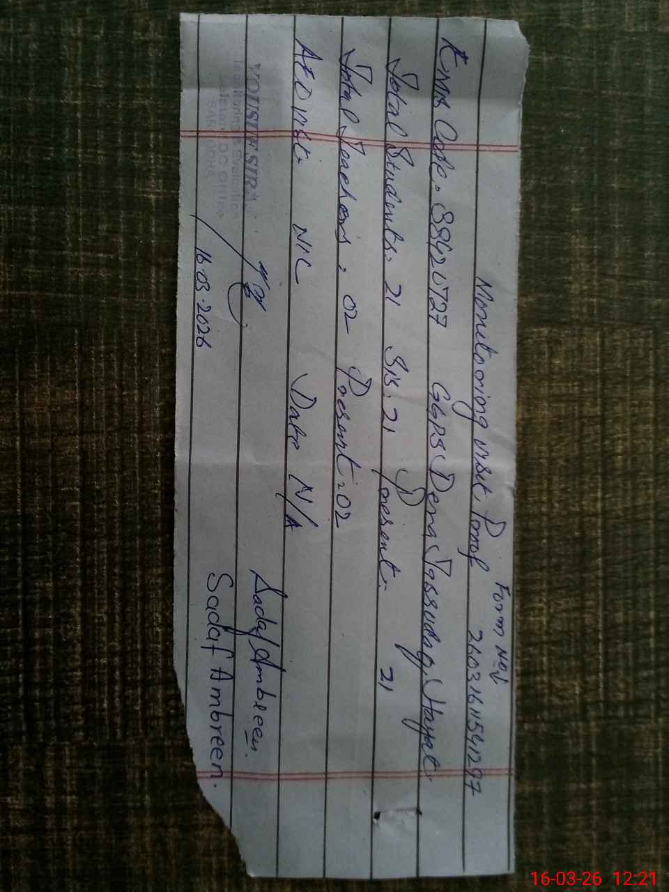 | Certified that this School was Inspected by the Undersigned MEA/DMO Today and the Information Stated Above is as Per Record. | |||||