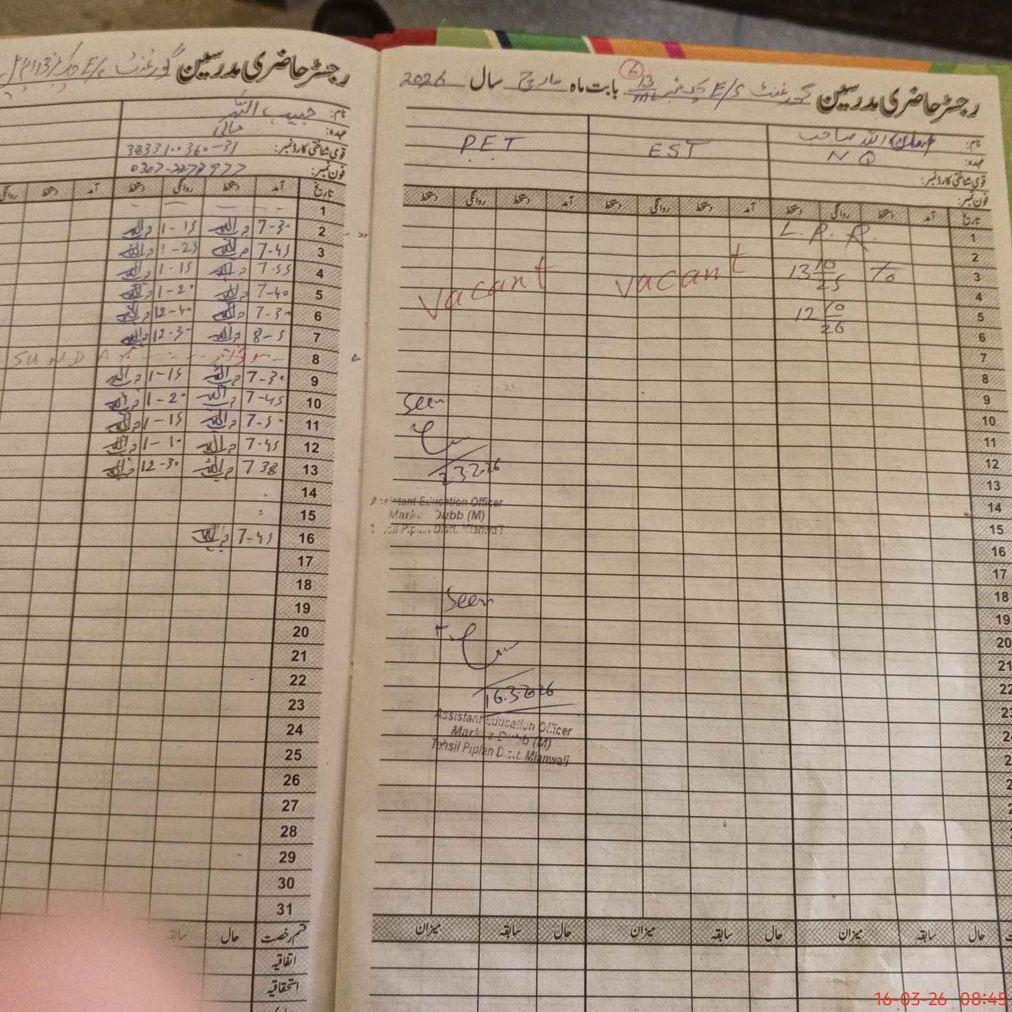 | Name: Mu**** Ra**** Designation: (School Headmaster's/Headmistress's) SST Phone/Cell Number: 03**** |