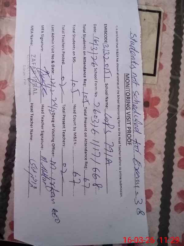 | Certified that this School was Inspected by the Undersigned MEA/DMO Today and the Information Stated Above is as Per Record. | |||||