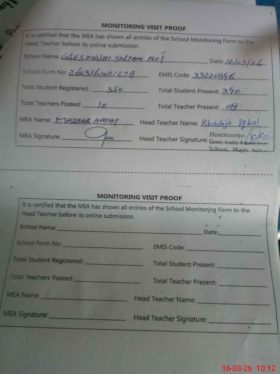 | EMIS Code: 33220846 | Name of School: GGES MAJHI SULTAN NO.1 | |||