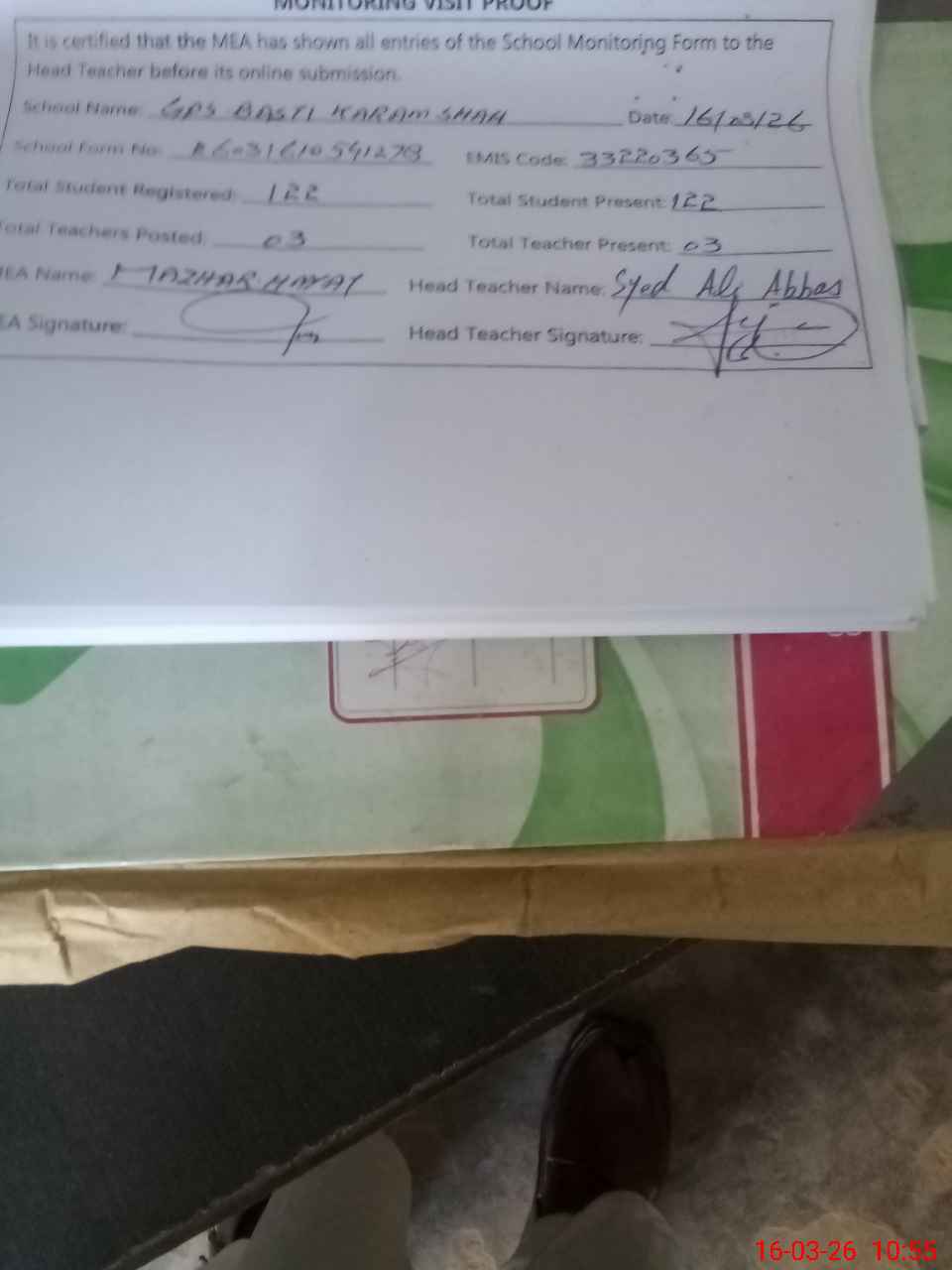 | EMIS Code: 33220365 | Name of School: GPS BASTI KARAM HUSSAIN | |||