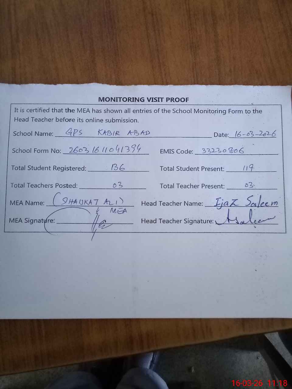 | EMIS Code: 33230806 | Name of School: GPS BASTI KABIR ABAD | |||