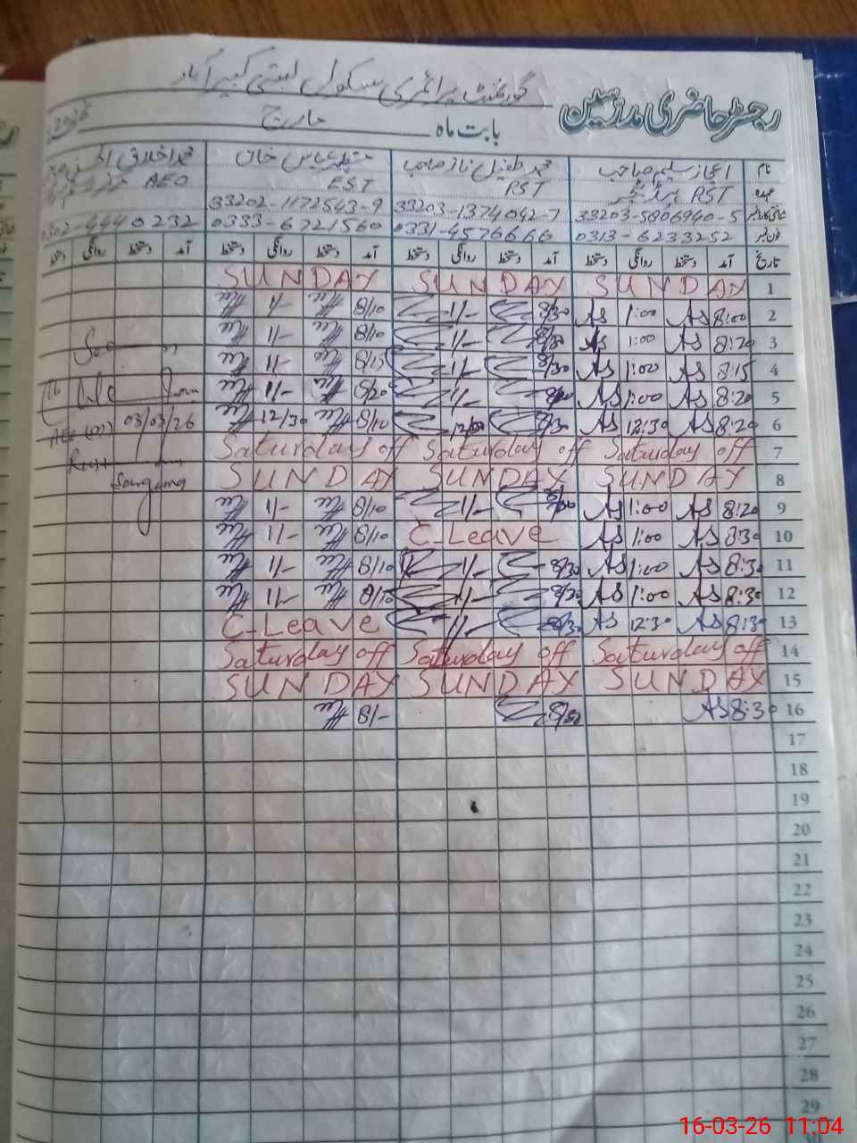 | Name: IJ**** SA**** Designation: (School Headmaster's/Headmistress's) PST Phone/Cell Number: 03**** |