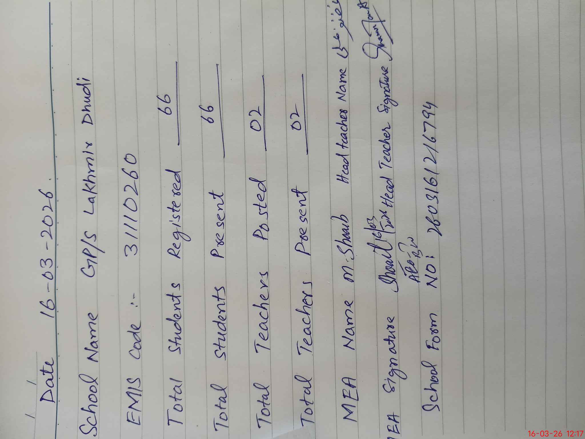 | EMIS Code: 31110260 | Name of School: GPS LAKHMIR DHUDI | |||