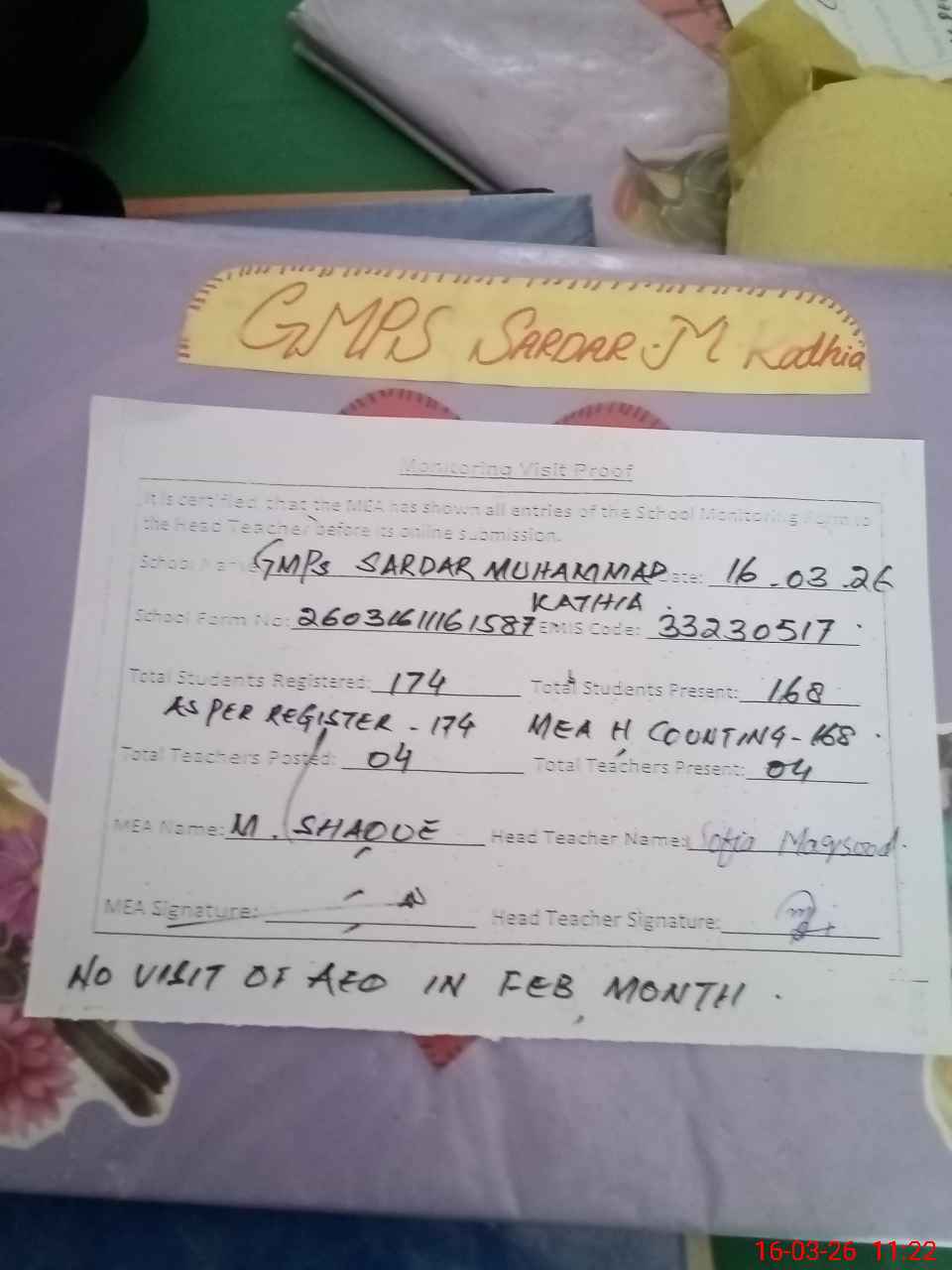 | EMIS Code: 33230517 | Name of School: GMPS SARDAR MUHAMMAD KATHIA | |||