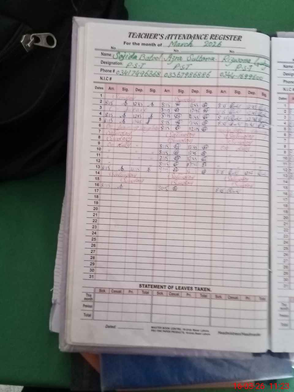 | Remarks (Use Separate Page if Required): azra sultana is permanent teacher but her mame is not in TAB list of teacher | |||||