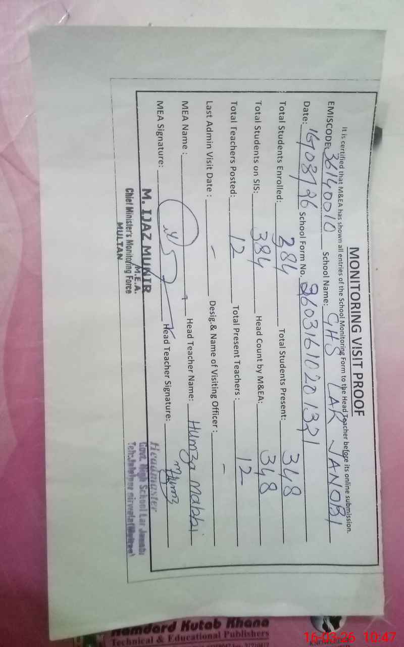 | EMIS Code: 36140010 | Name of School: GHS BASTI LAR JANUBI | |||