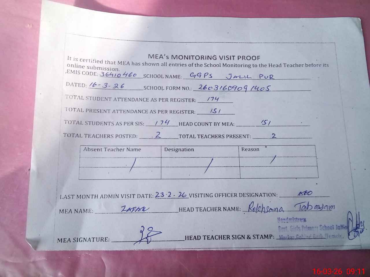 | EMIS Code: 36410460 | Name of School: GGPS JALIL PUR, ABDUL HAKIM | |||