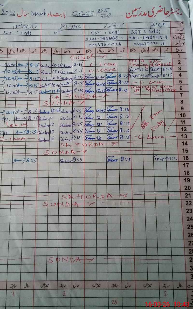 | Name: FA**** AN**** Designation: (School Headmaster's/Headmistress's) S.S.T. GEN Phone/Cell Number: 03**** |