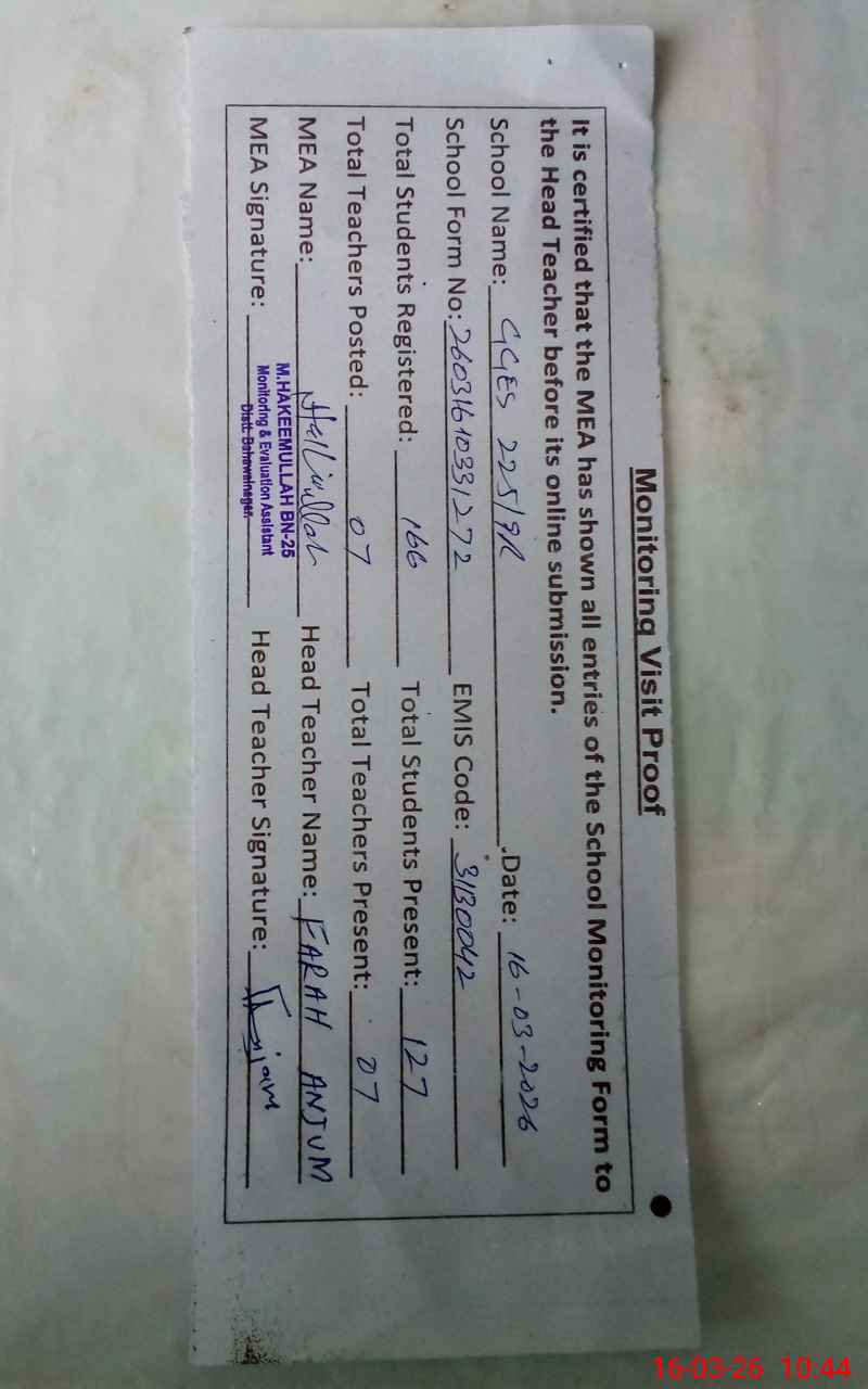 | EMIS Code: 31130042 | Name of School: GGES CHAK NO 225/9-R | |||