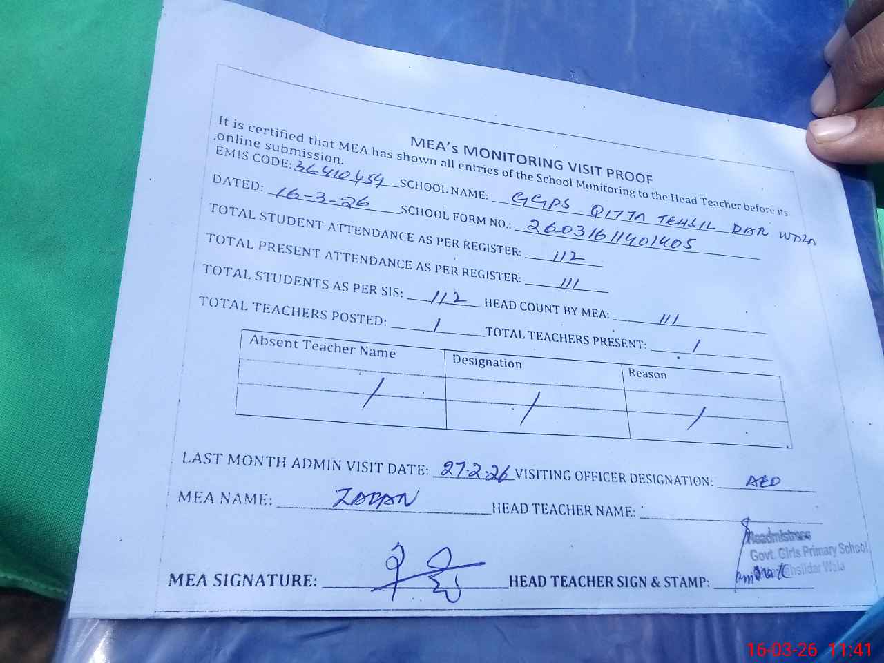 | EMIS Code: 36410454 | Name of School: GGPS QITTA TEHSIL DAR WALA, ABDUL | |||