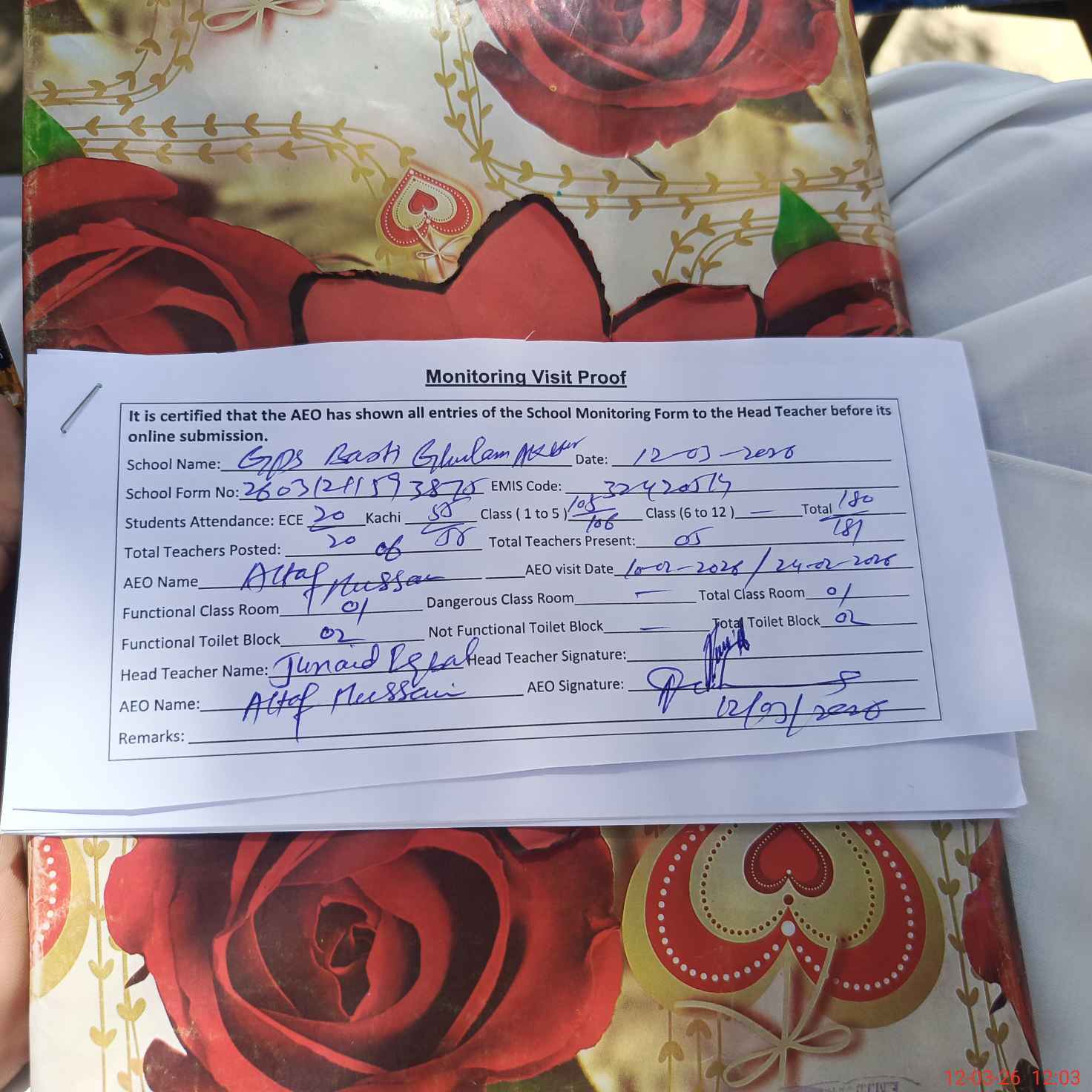 | EMIS Code: 32420514 | Name of School: GPS BASTI GHULAM AKBAR | |||
