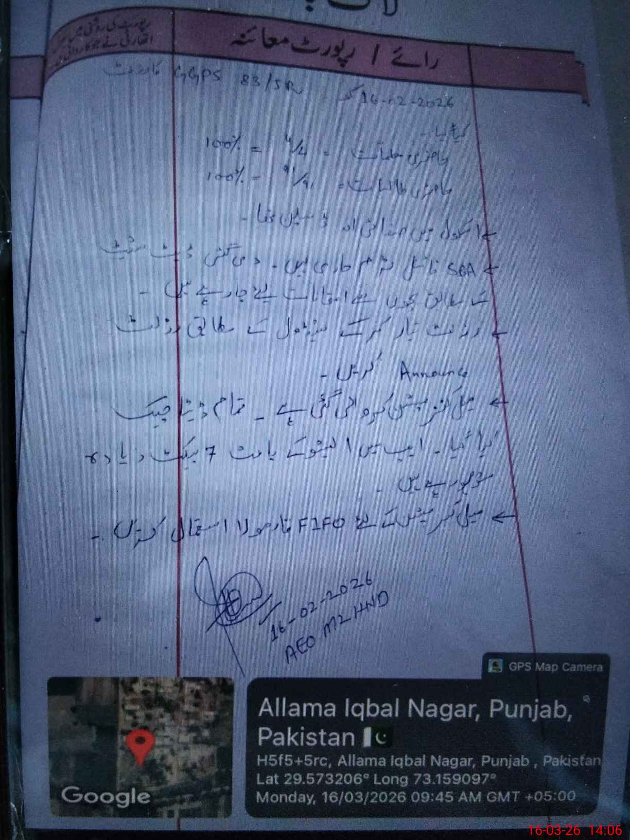 | Certified that this School was Inspected by the Undersigned MEA/DMO Today and the Information Stated Above is as Per Record. | |||||