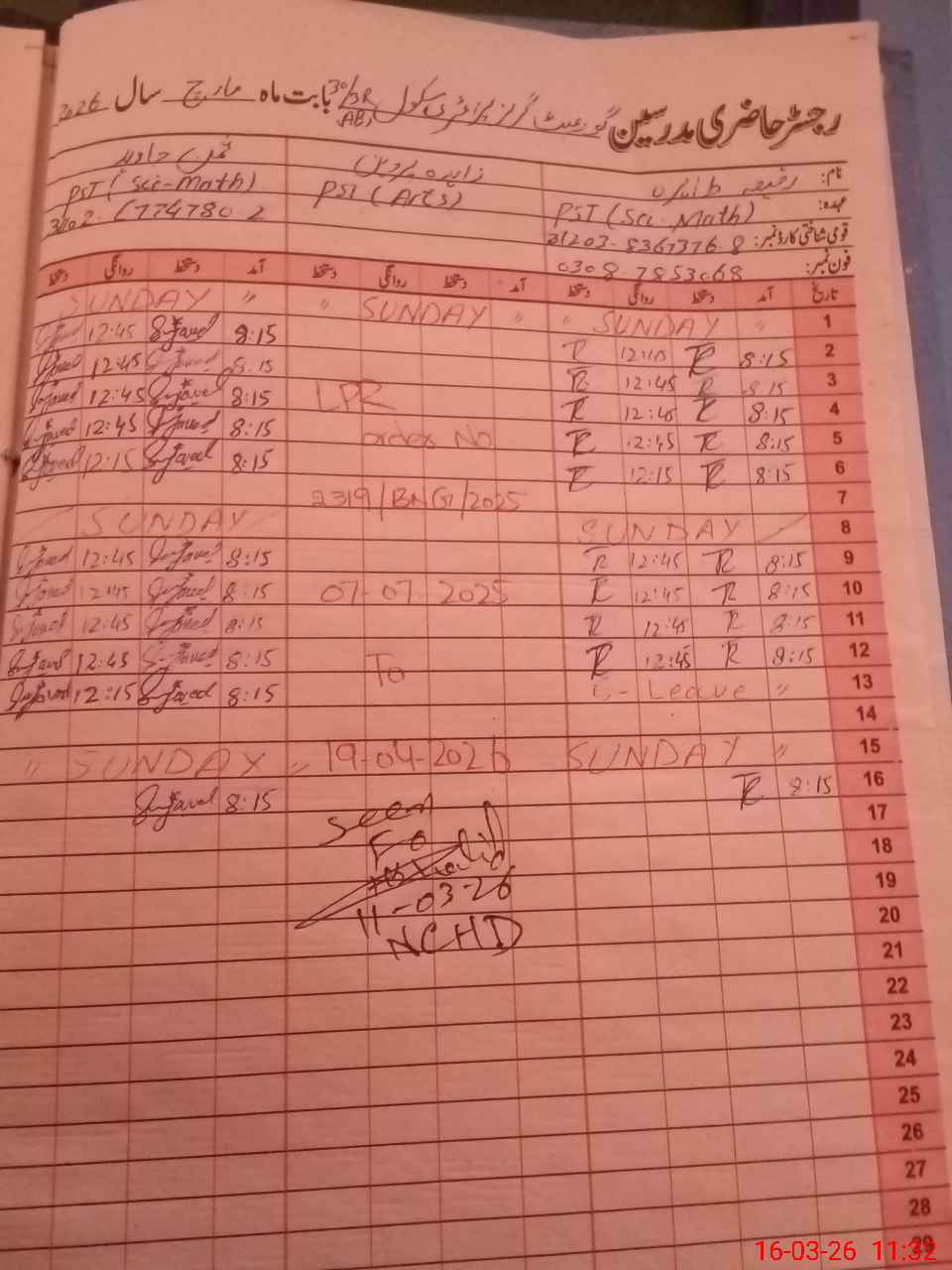 | Name: Ra**** Ta**** Designation: (School Headmaster's/Headmistress's) PST Phone/Cell Number: 03**** |
