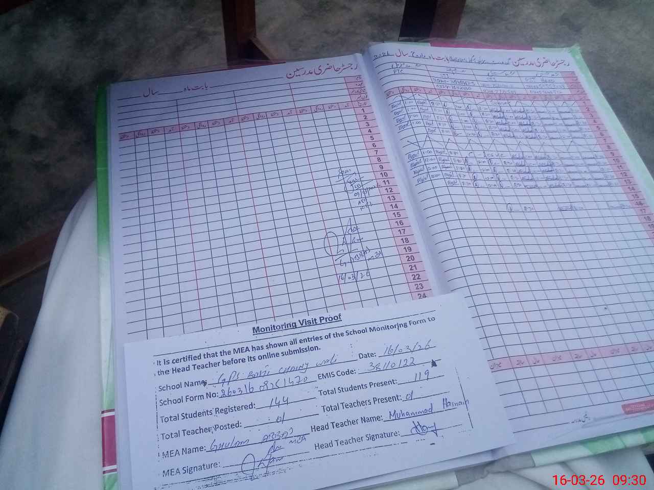 | EMIS Code: 38110122 | Name of School: GPS BASTI CHAINY WALI | |||