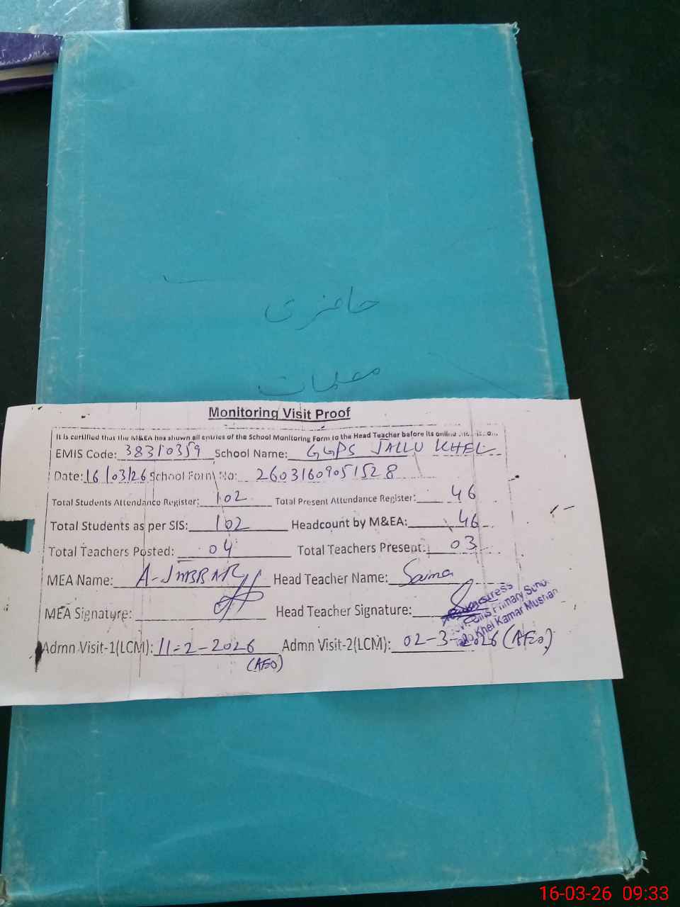 | EMIS Code: 38310359 | Name of School: GGPS JALLU KHEL | |||