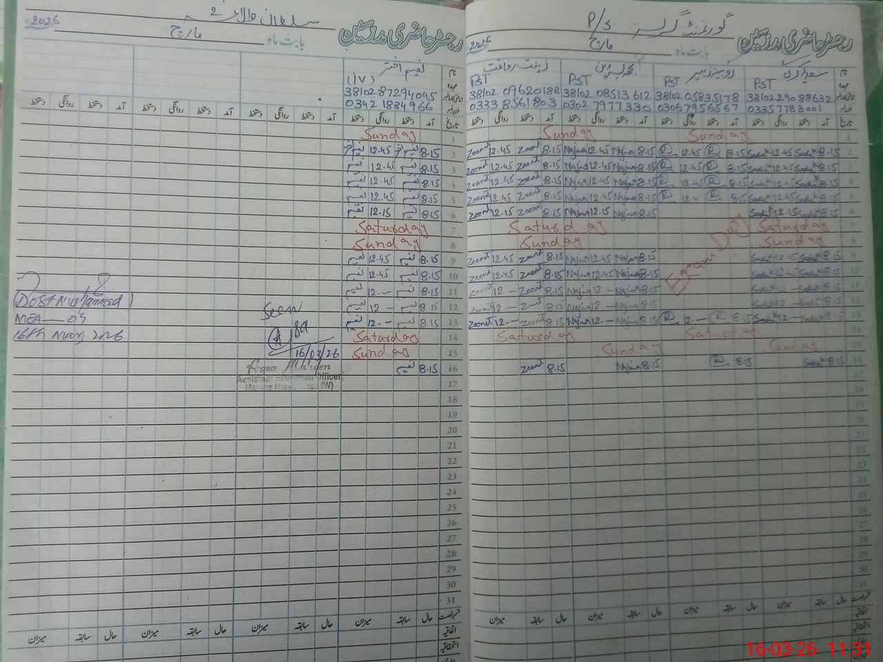 | Remarks (Use Separate Page if Required): All the entered data loudly share with the head teacher before submitted Nursery class not present due to the current international situation after the decision of the Punjab Government Teacher Zeenat Rafaqat also not available due to the above mentioned situation | |||||
