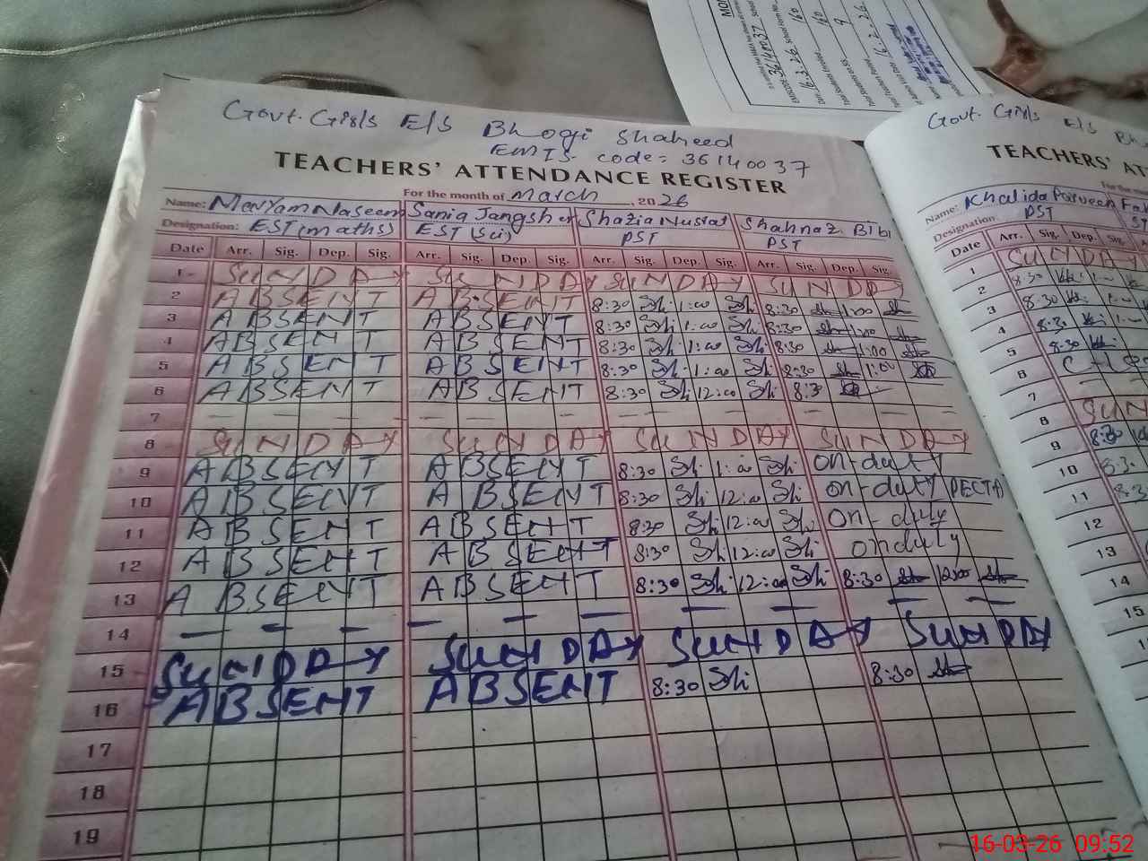 | 36**** | Sa**** Ja**** | EST (Math) | Regular | 0 | 0 | 0 | 0 | 0 | 0 | 0 | 0 | 0 | Absent (Un-Authorized) |