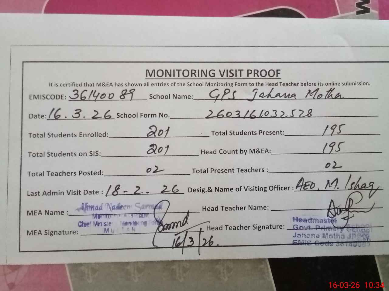 | EMIS Code: 36140089 | Name of School: GPS JAHANA MOTHA MUZA MOTHA P/O KOTLA CHAKAR JPP. | |||