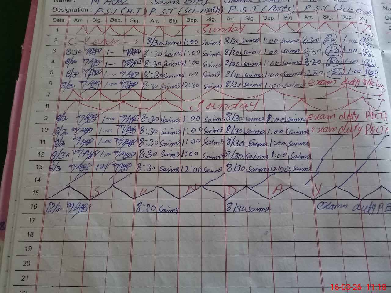 | Leave | Duty | Absent | Maternity | Medical | Ex- Pak |