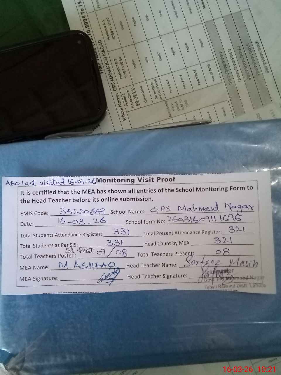 | EMIS Code: 35220669 | Name of School: GPS MAHMOOD NAGAR | |||