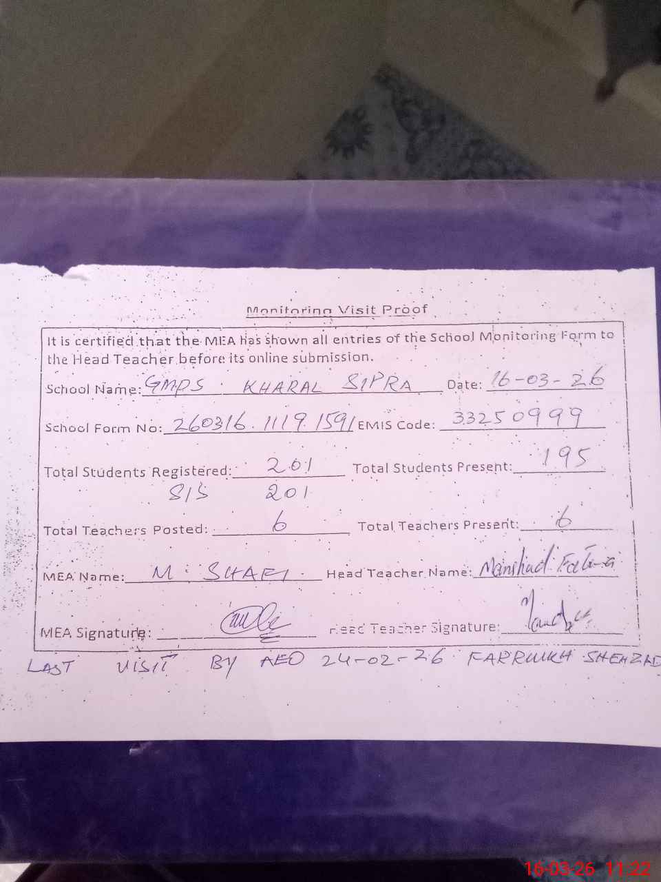 | EMIS Code: 33250999 | Name of School: GMPS KHARAL SIPRA | |||