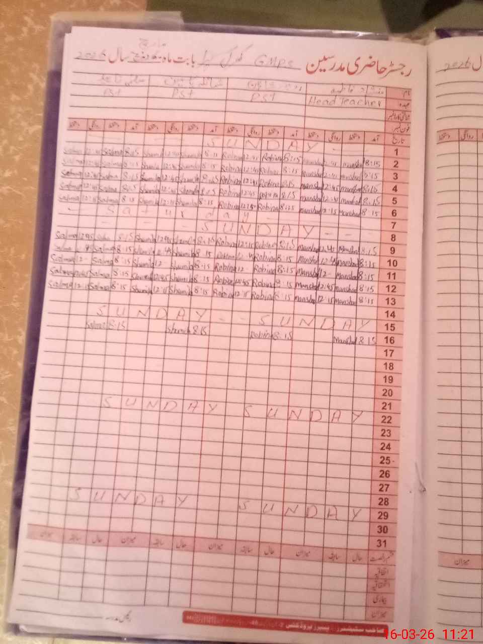 | Name: MA**** FA**** Designation: (School Headmaster's/Headmistress's) PST Phone/Cell Number: 03**** |