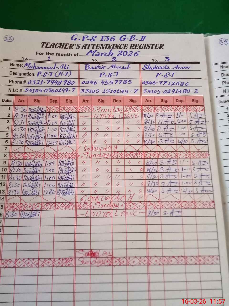 | Name: MU**** AL**** Designation: (School Headmaster's/Headmistress's) PST Phone/Cell Number: 03**** |