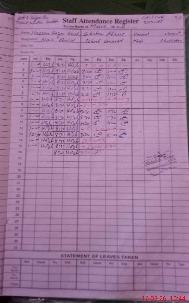 | Name: Mu**** So**** Kh**** Designation: (School Headmaster's/Headmistress's) SST Phone/Cell Number: 03**** |