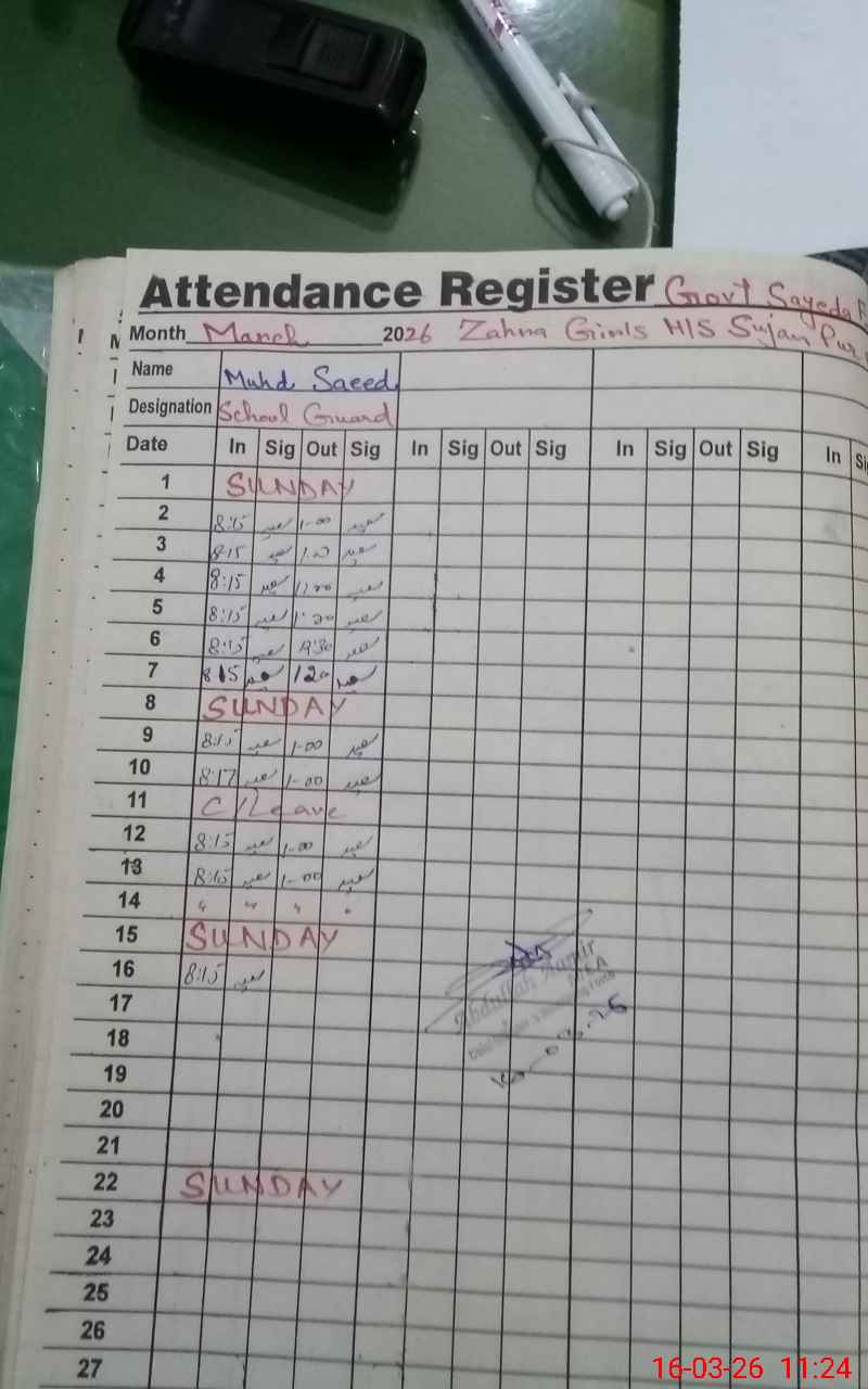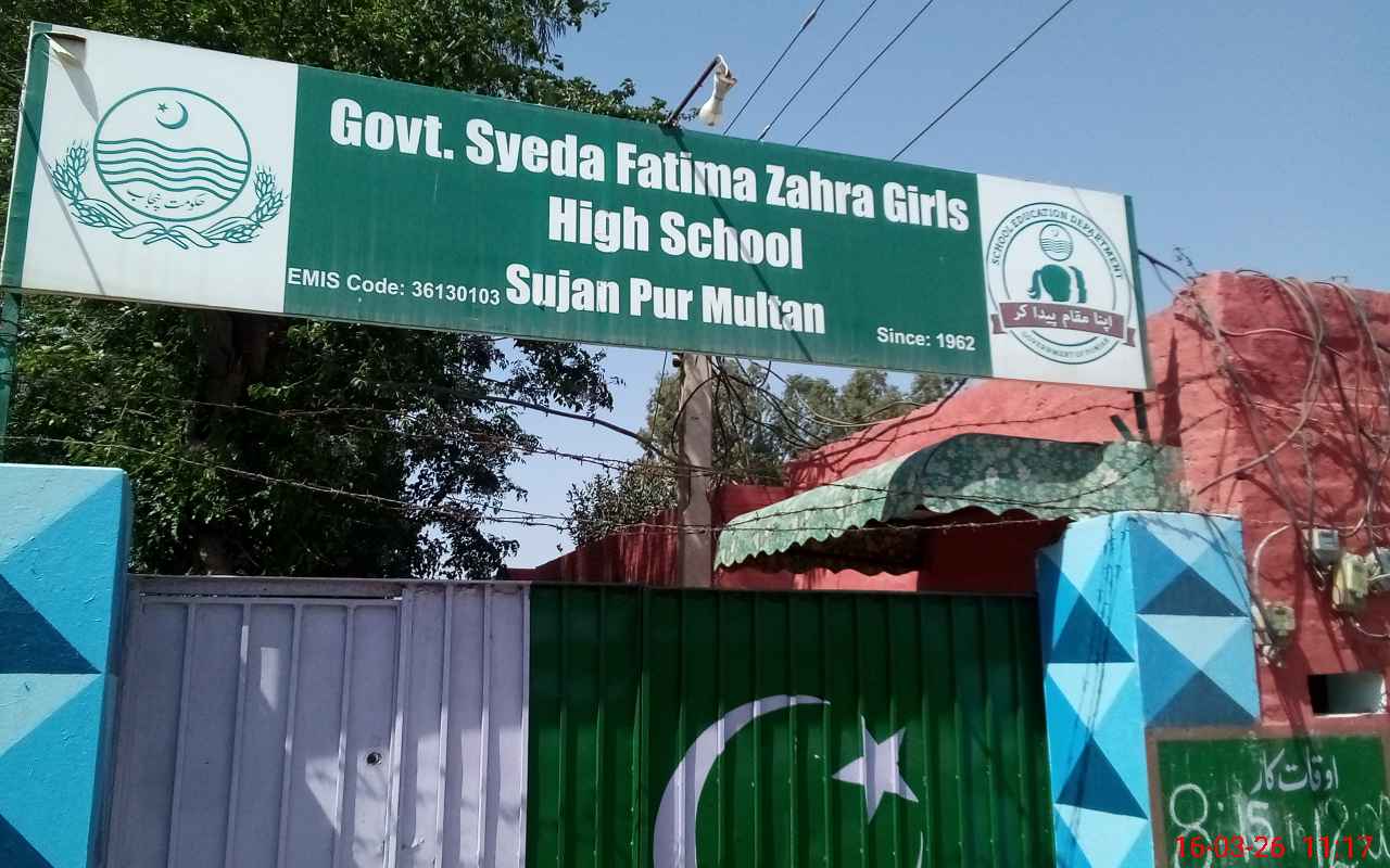 | EMIS Code: 36130103 | Name of School: GOVT. SAYEDA FATIMA ZAHRA GIRLS HIGH SCHOOL (SUJAN PUR) | |||