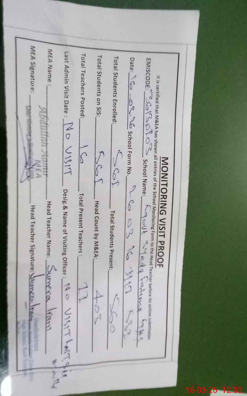 | Certified that this School was Inspected by the Undersigned MEA/DMO Today and the Information Stated Above is as Per Record. | |||||