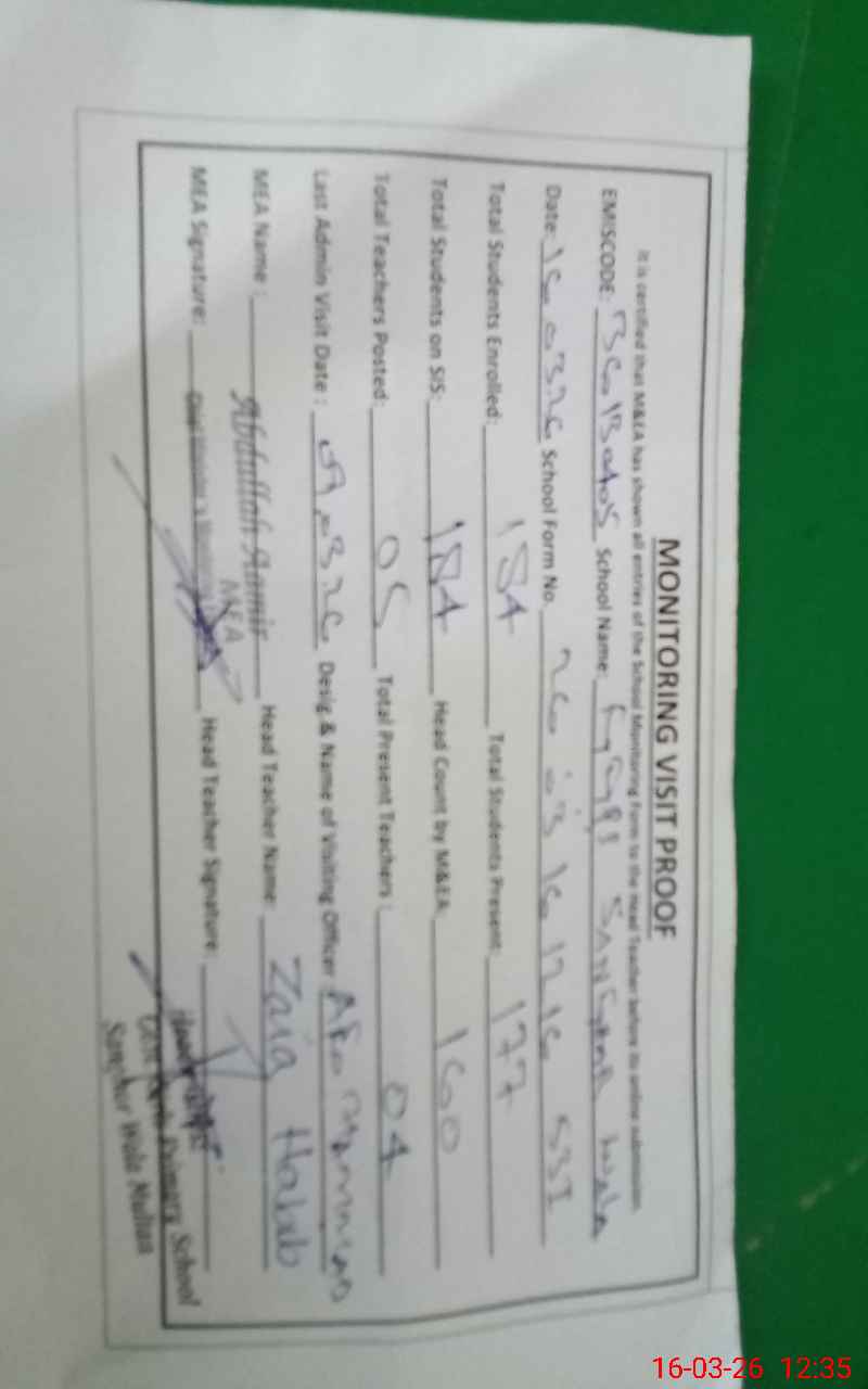 | Remarks (Use Separate Page if Required): Roznamcha of students not maintained | |||||