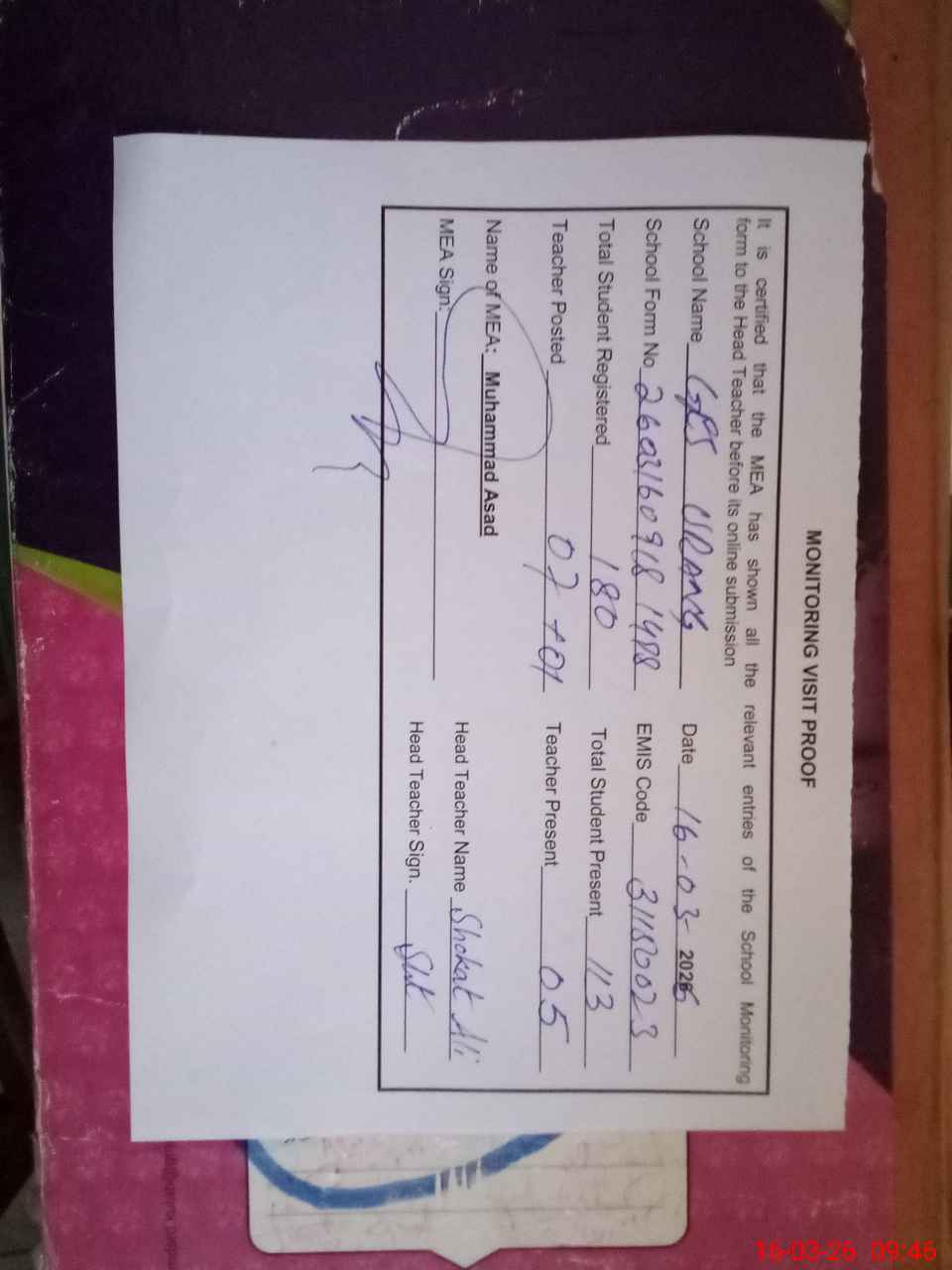 | Certified that this School was Inspected by the Undersigned MEA/DMO Today and the Information Stated Above is as Per Record. | |||||