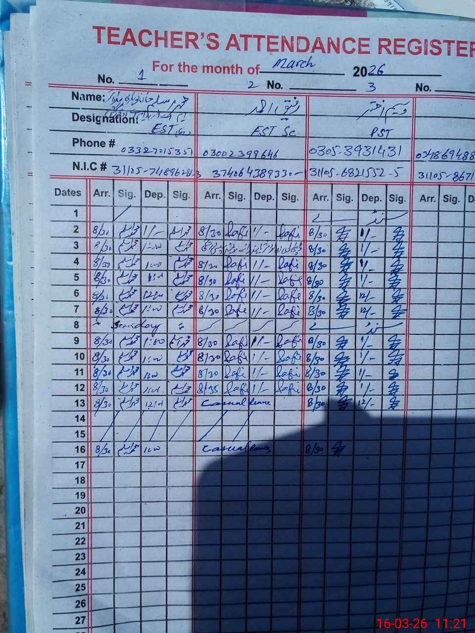 | 31**** | Mu**** Na**** | ESE Science | Contract | 0 | 0 | 0 | 0 | 0 | 0 | 0 | 0 | 0 | Absent (Un-Authorized) |