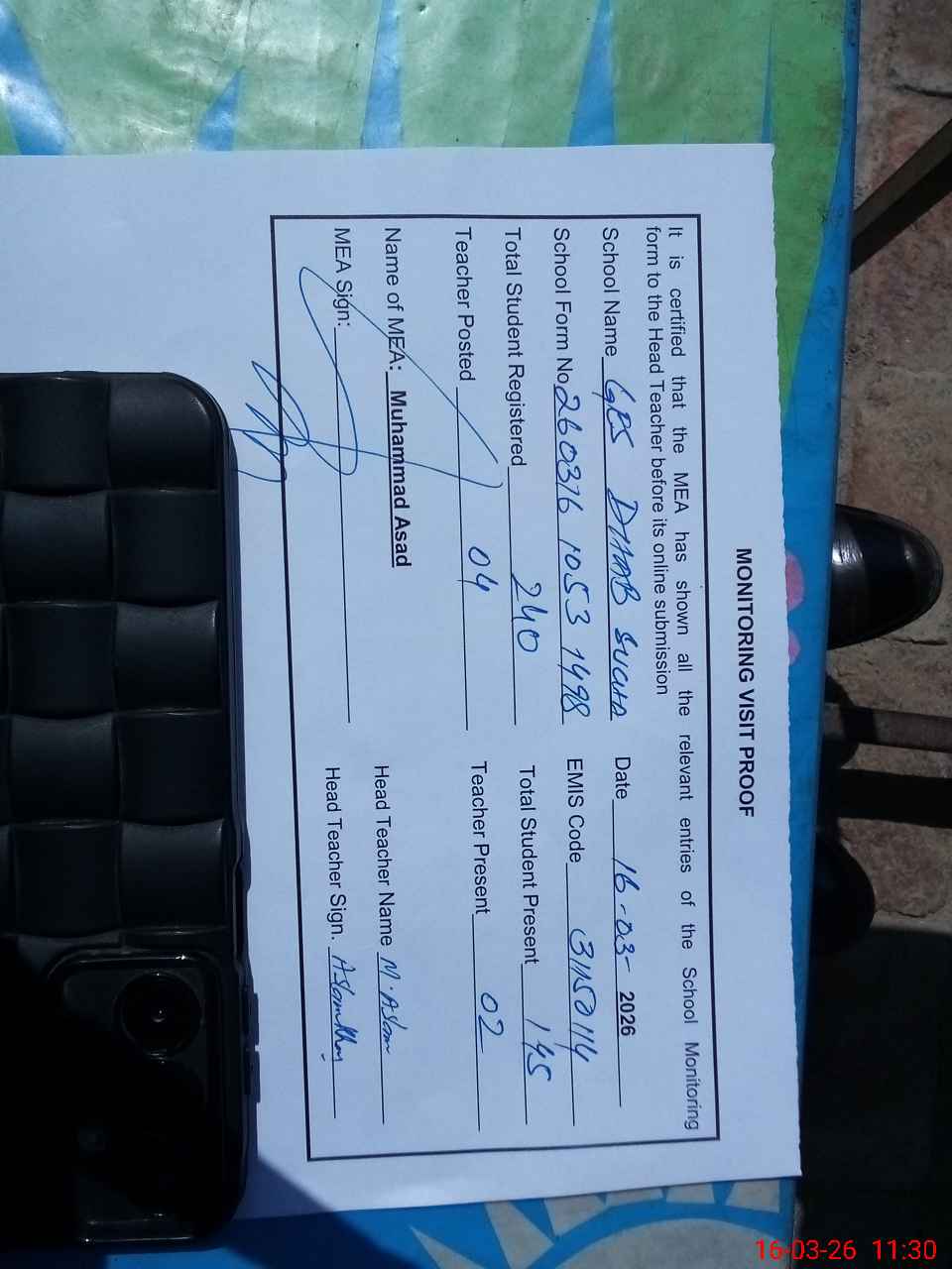 | Certified that this School was Inspected by the Undersigned MEA/DMO Today and the Information Stated Above is as Per Record. | |||||