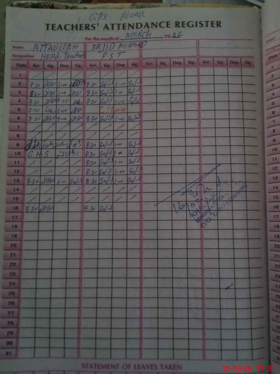 | Name: At**** UAL**** Designation: (School Headmaster's/Headmistress's) HEADMASTER Phone/Cell Number: 03**** |