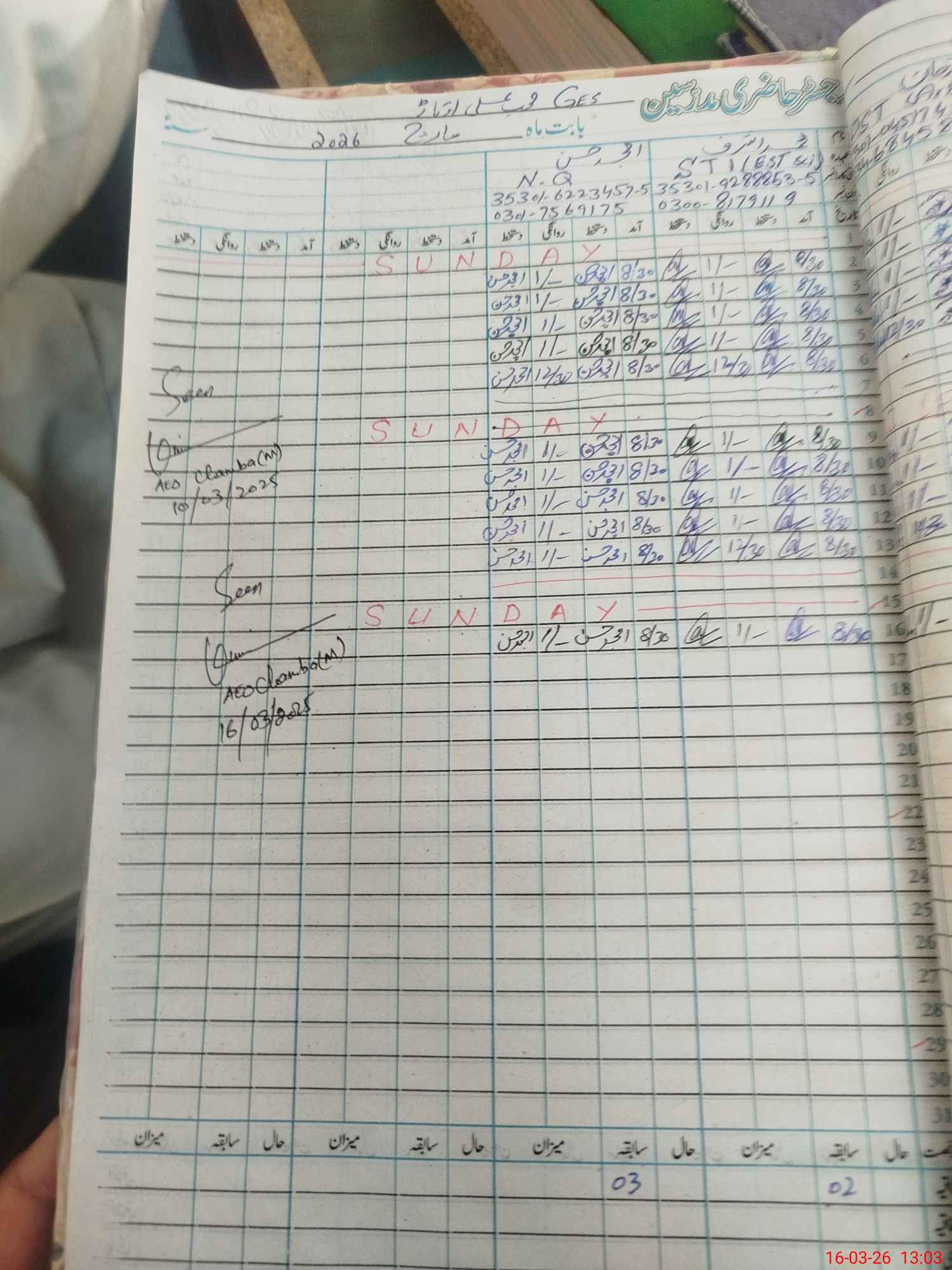 | Name: FA**** SH**** MA**** Designation: (School Headmaster's/Headmistress's) S.S.T.(Arts) Phone/Cell Number: 03**** |