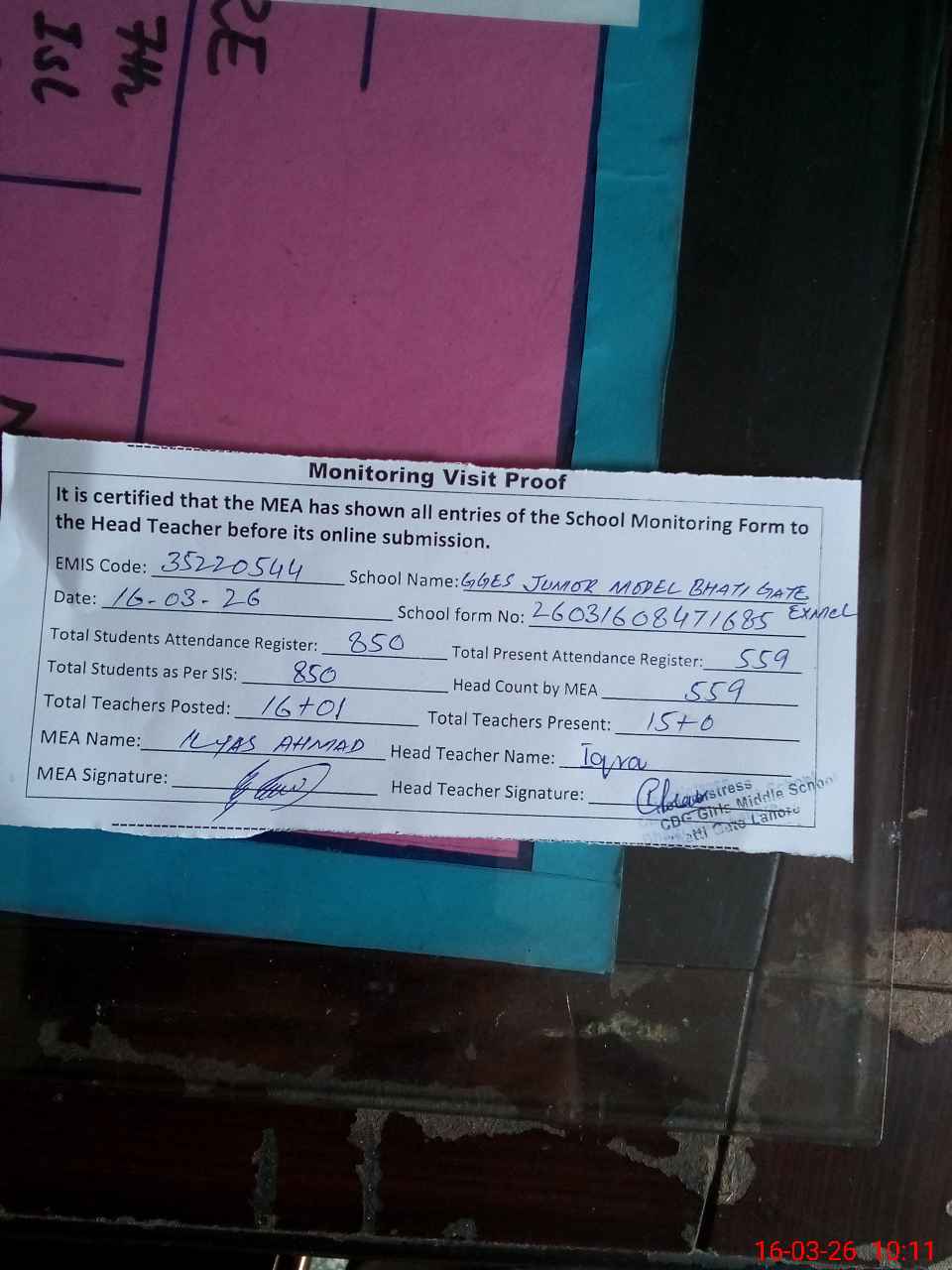| EMIS Code: 35220544 | Name of School: GGES JUNIOR MODEL BHATI GATE (EX-MCL) | |||