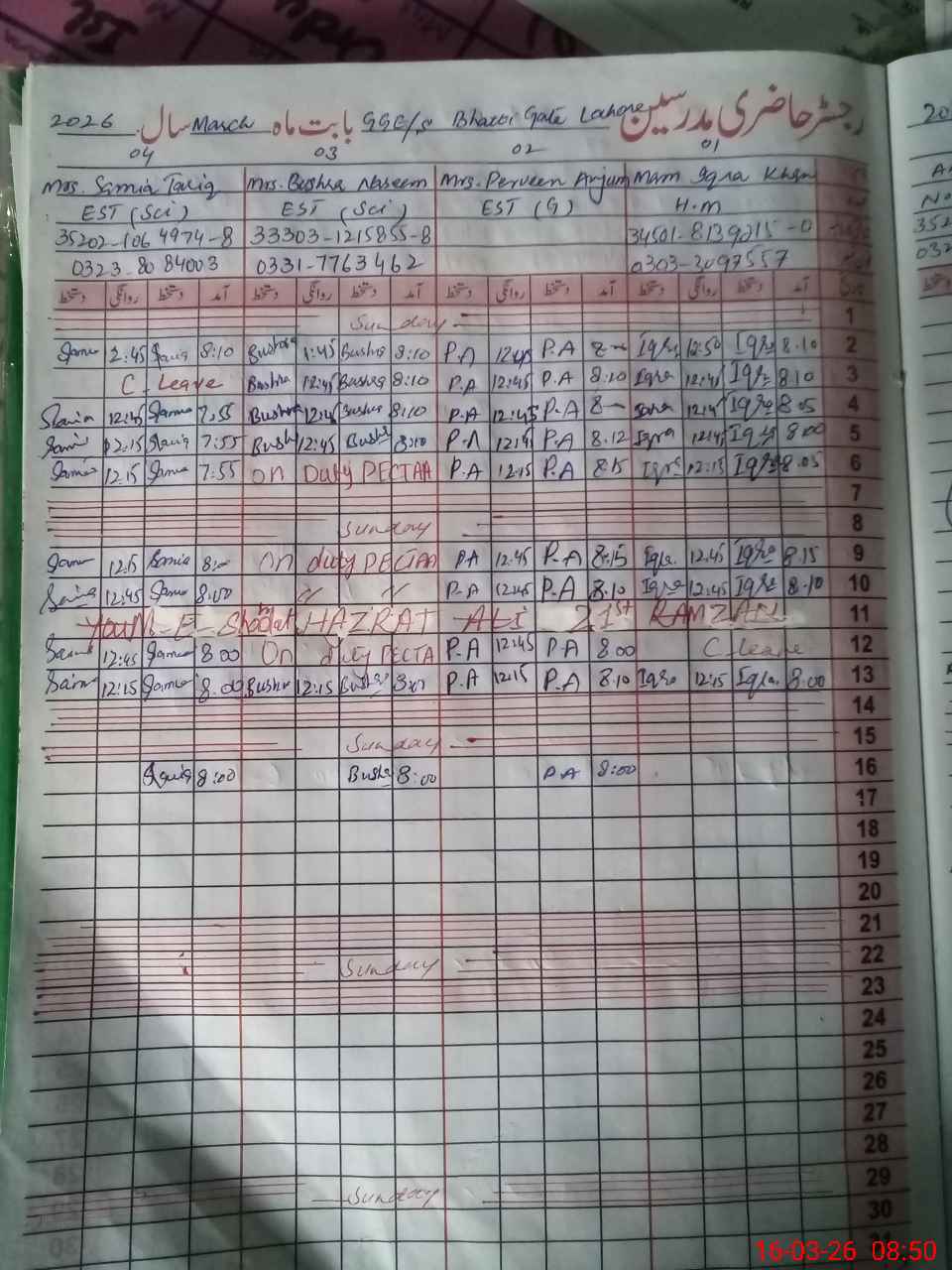 | 33**** | At**** Sh**** | PST Science/Maths | Regular | 0 | 0 | 28 | 0 | 0 | 0 | 0 | 0 | 0 | Absent (Un-Authorized) |