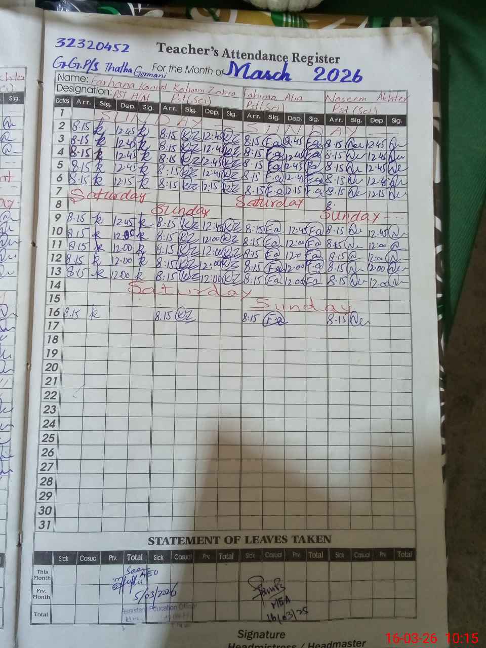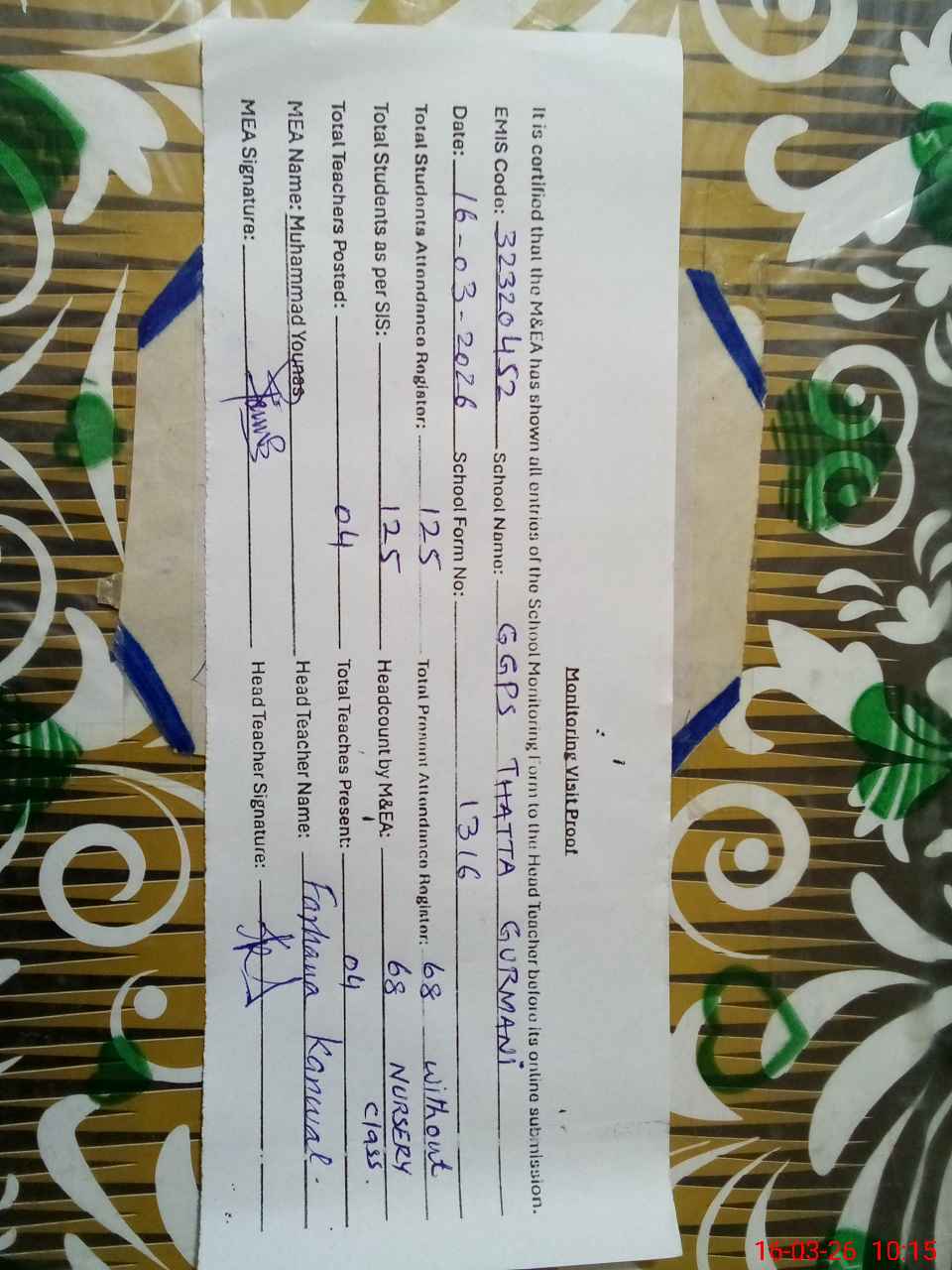 | EMIS Code: 32320452 | Name of School: GGPS THATTA GURMANI | |||