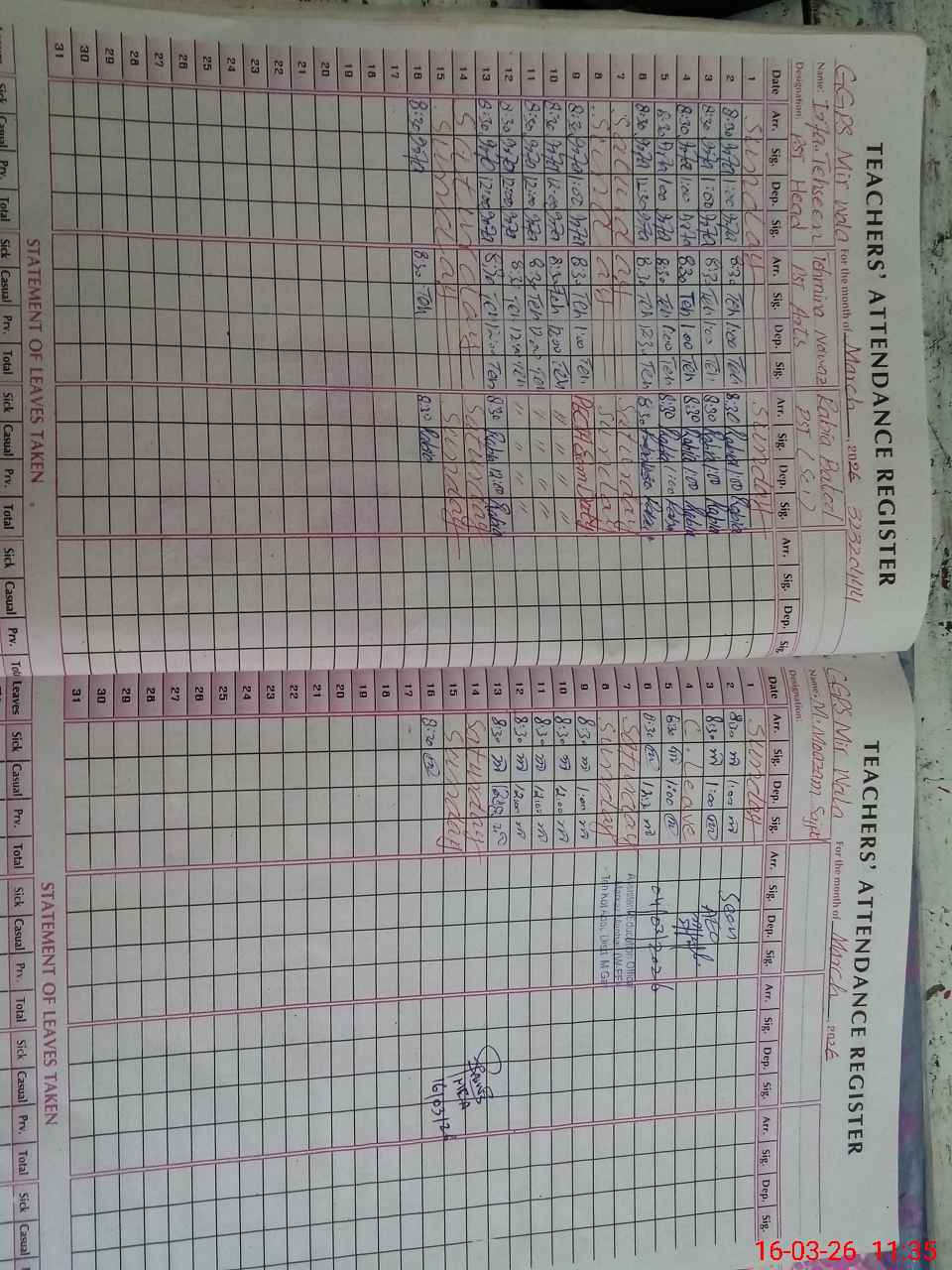 | Leave | Duty | Absent | Maternity | Medical | Ex- Pak |