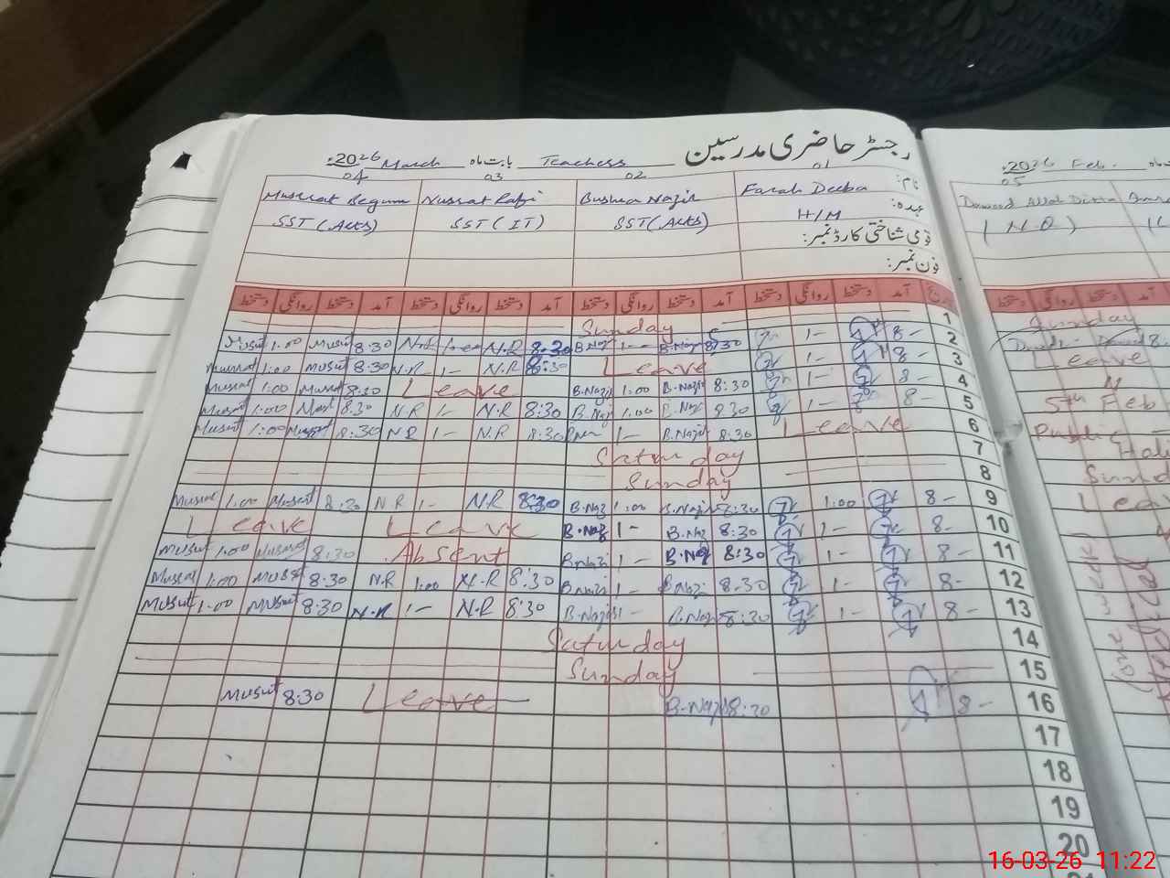 | Leave | Duty | Absent | Maternity | Medical | Ex- Pak |