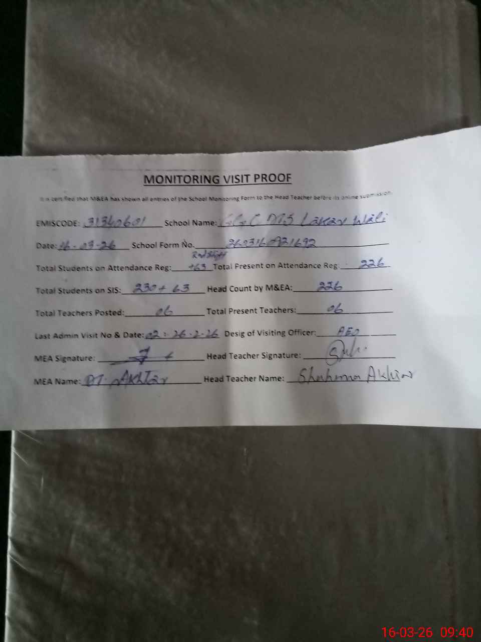 | EMIS Code: 31340601 | Name of School: GGCMS LAKAR WALI | |||