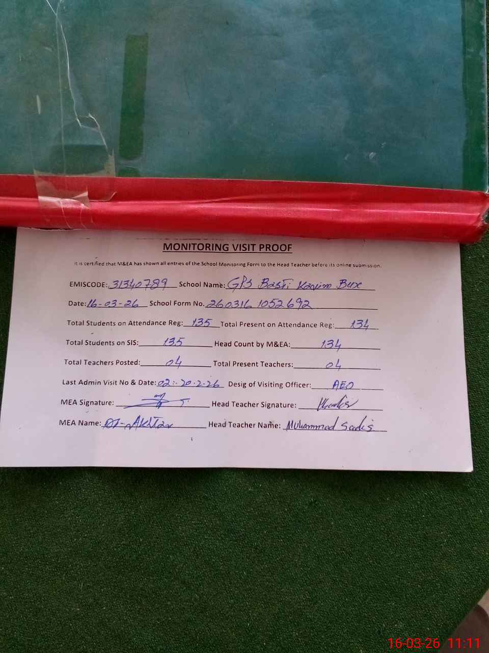 | EMIS Code: 31340789 | Name of School: GPS BASTI KARIM BAKHSH BHAIT | |||