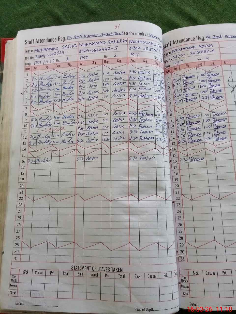| Name: M.**** Designation: (School Headmaster's/Headmistress's) PST/PTC/JV Phone/Cell Number: 03**** |